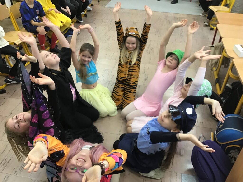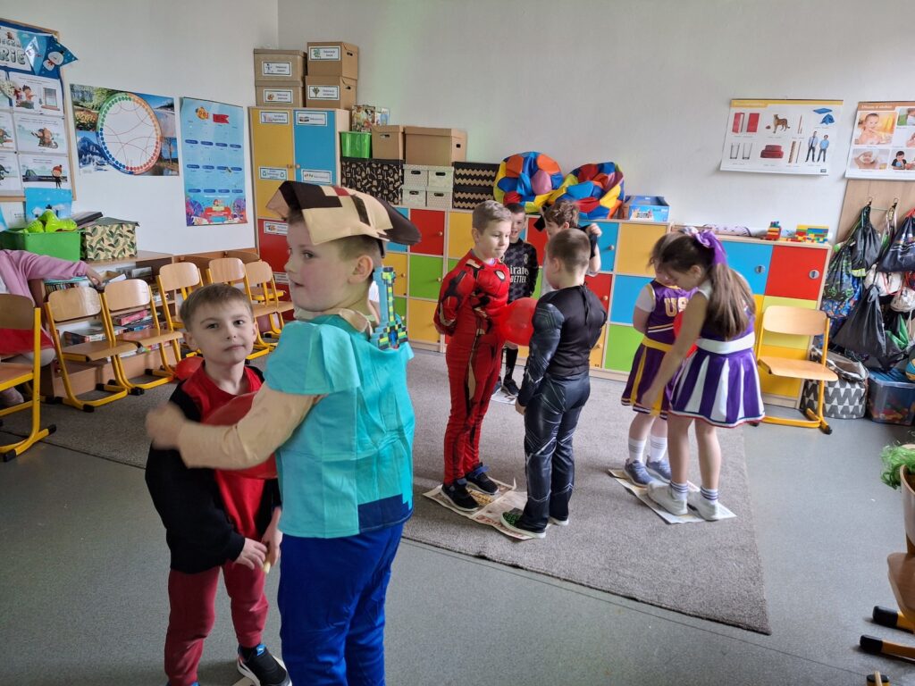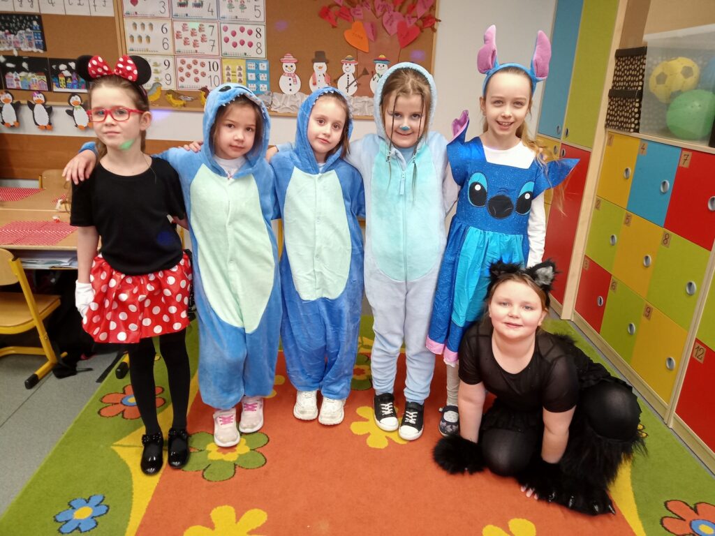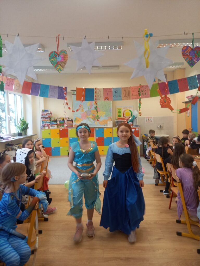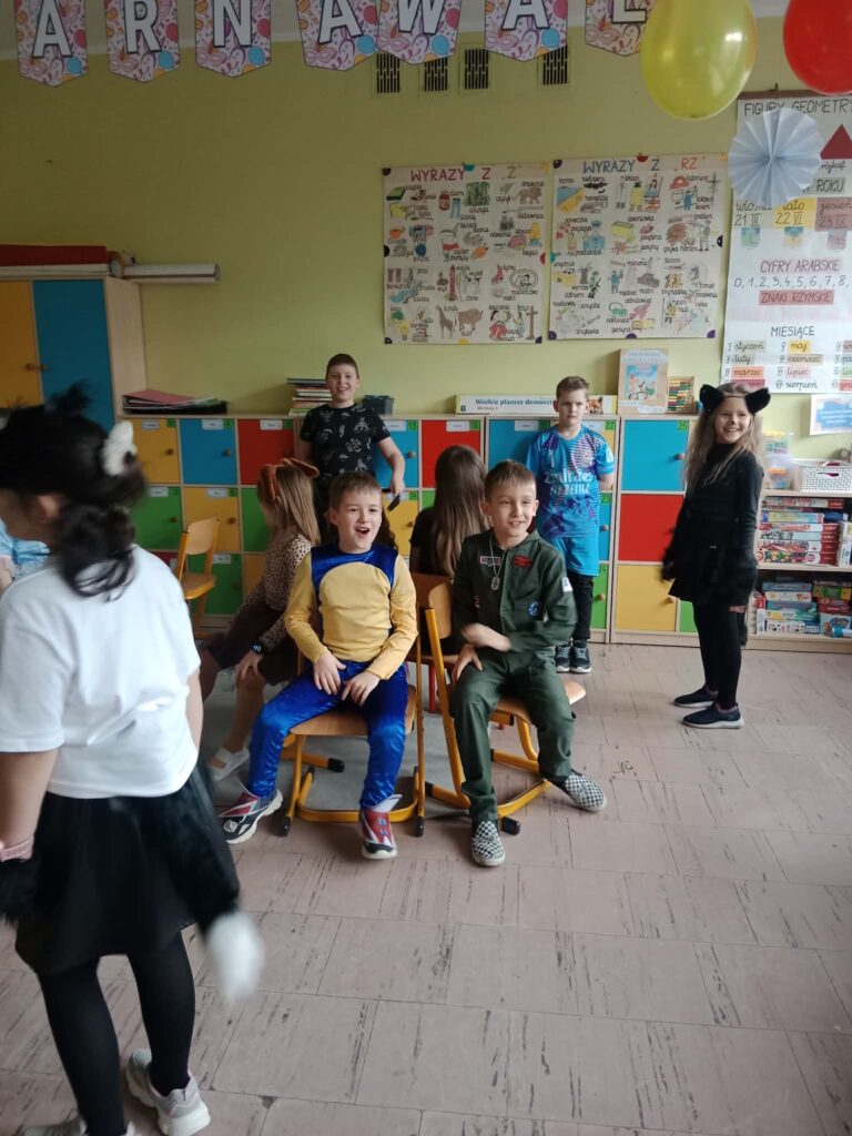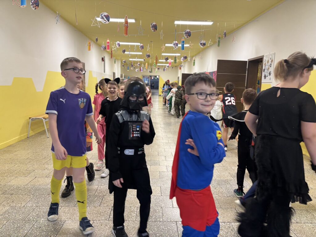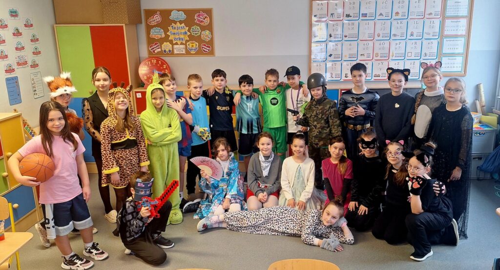Na szkolnych korytarzach można było spotkać prawdziwych bohaterów bajek, odważnych rycerzy, urocze zwierzątka, księżniczki, a nawet śpiochów w ciepłych pidżamach! Dzieci z dumą prezentowały swoje stroje, które często przygotowywały wspólnie z rodzicami. Każdy kostium był jedyny w swoim rodzaju i dodawał wyjątkowego klimatu wspólnej zabawie.