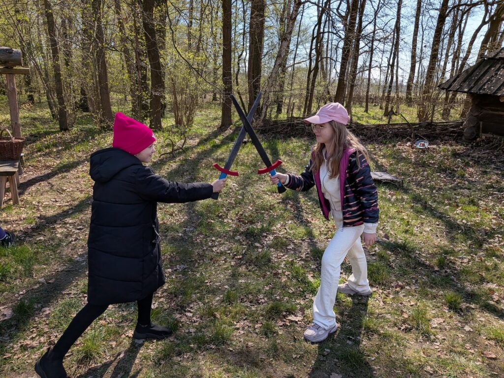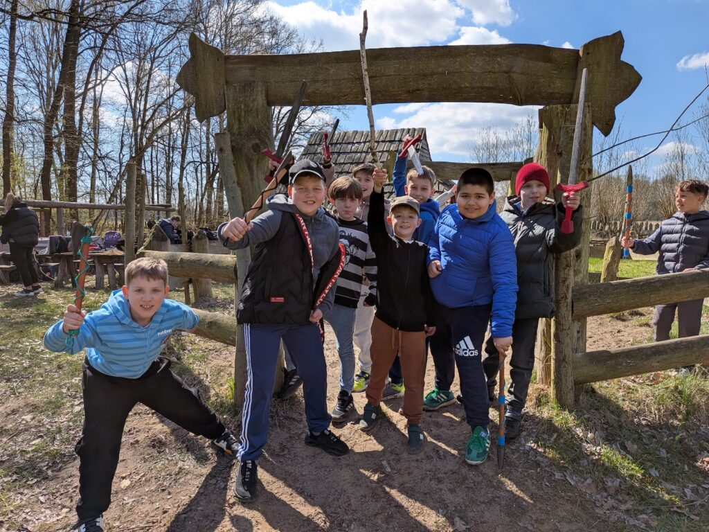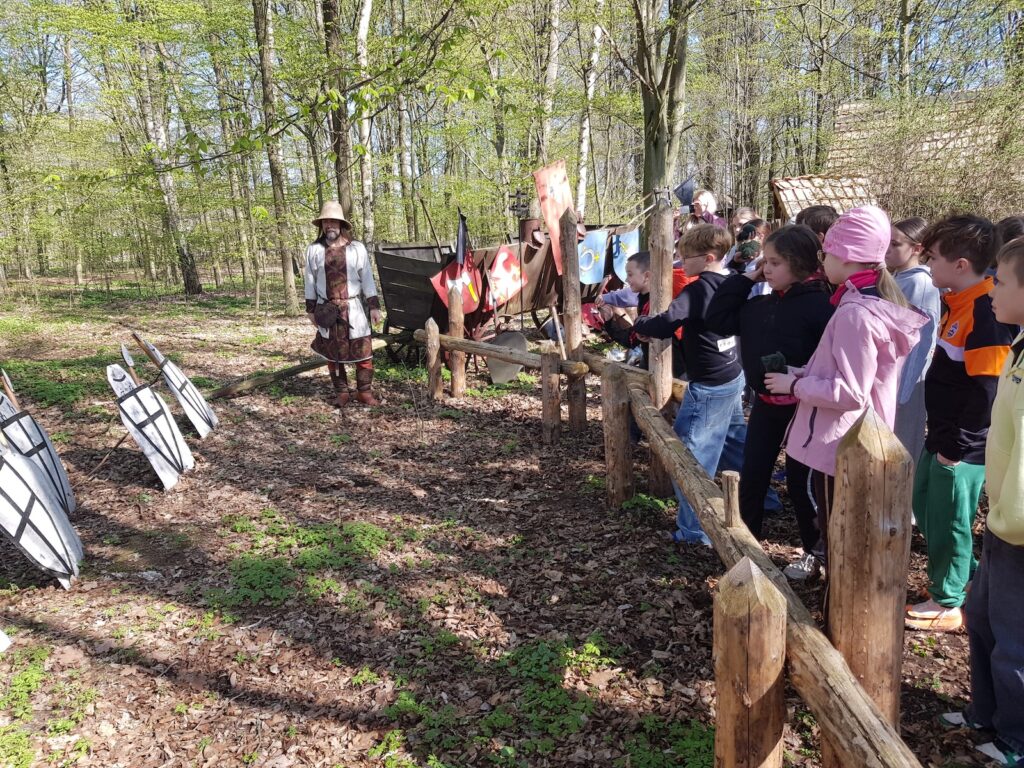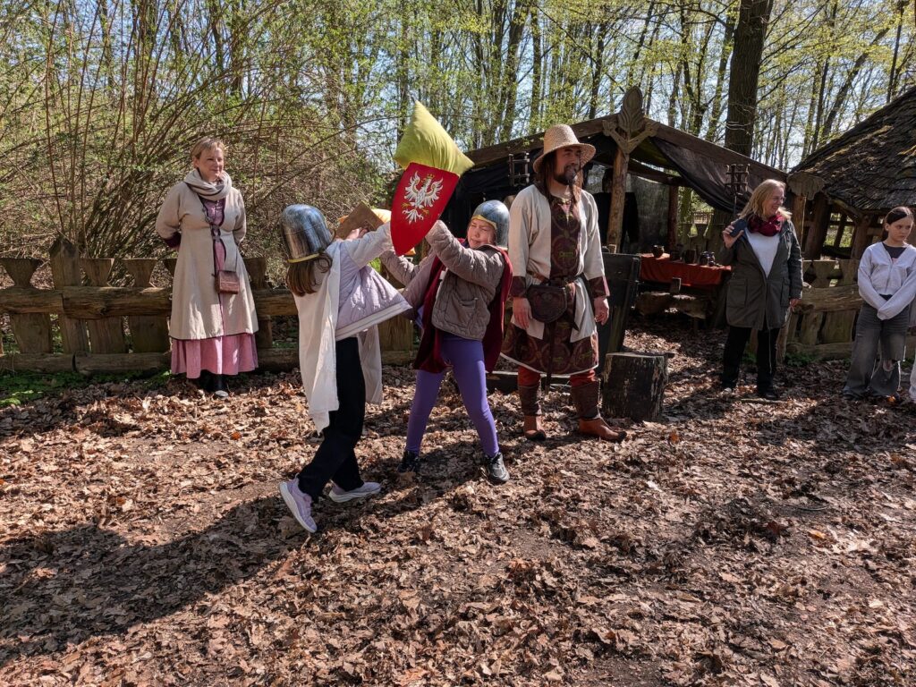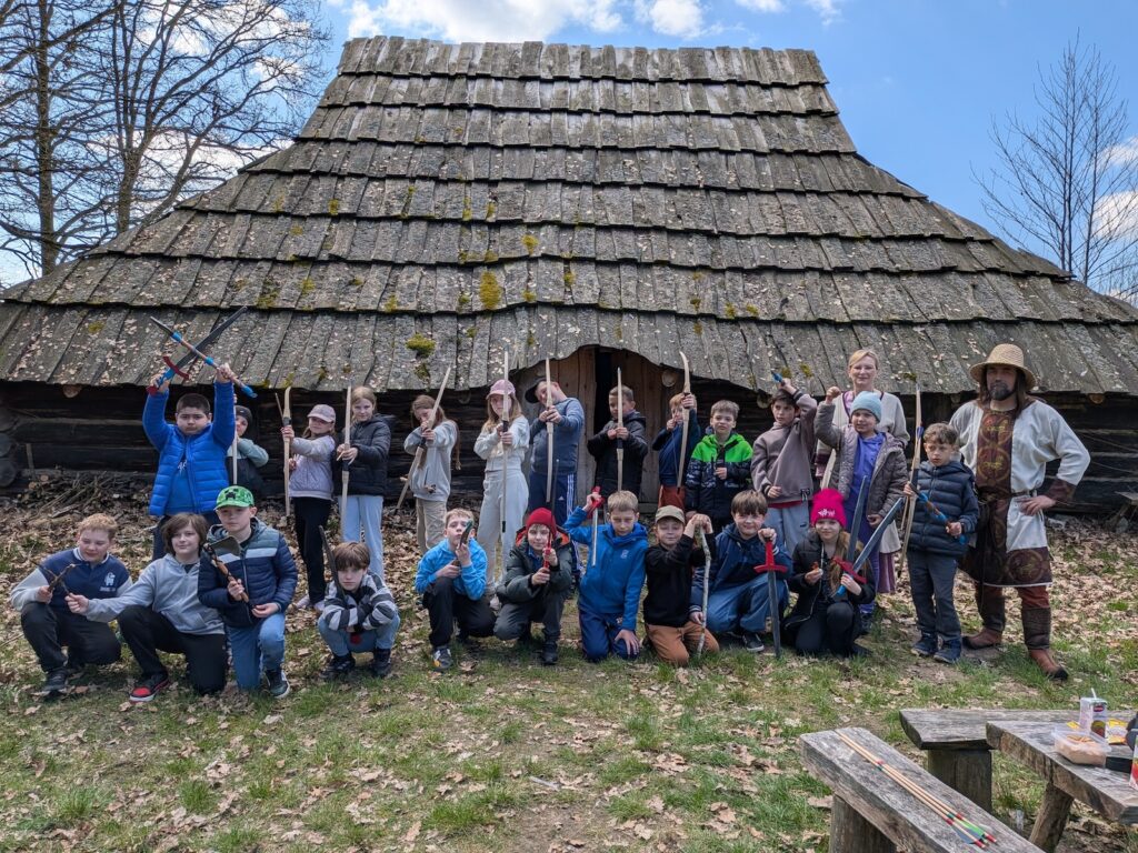 Ogromnym zainteresowaniem cieszyły się także warsztaty archeologiczne. Uczniowie wcielili się w rolę odkrywców, poszukując i rozpoznając artefakty związane z dawnymi czasami. Nie zabrakło również ruchu i dobrej zabawy – odbyła się „bitwa”, w której zamiast broni wykorzystano poduszki, a uczestnicy mieli na sobie elementy żołnierskiego wyposażenia. Dużo emocji dostarczyły także konkurencje takie jak strzelanie z łuku czy rzuty do celu.