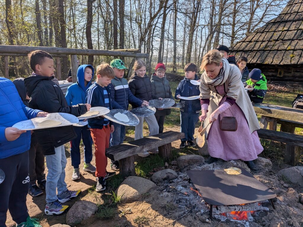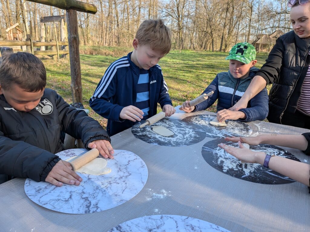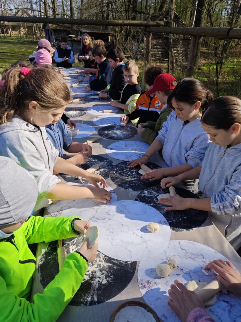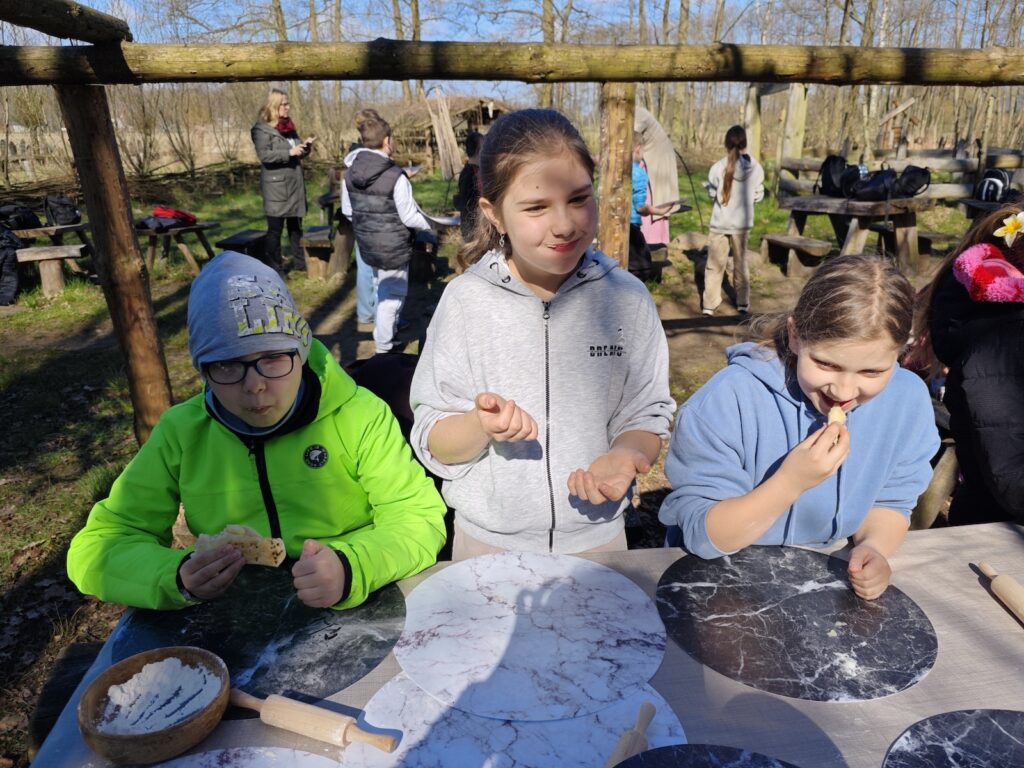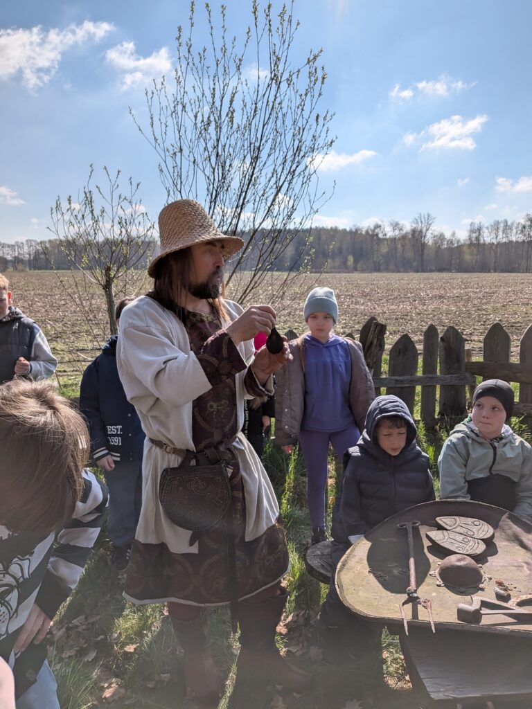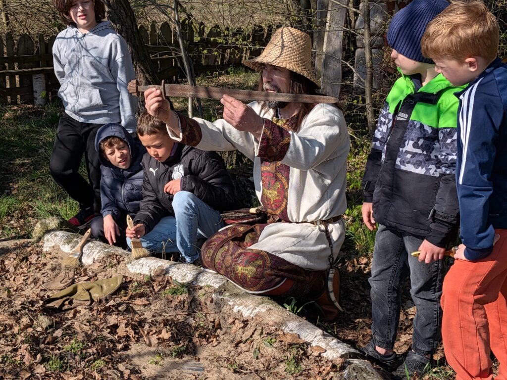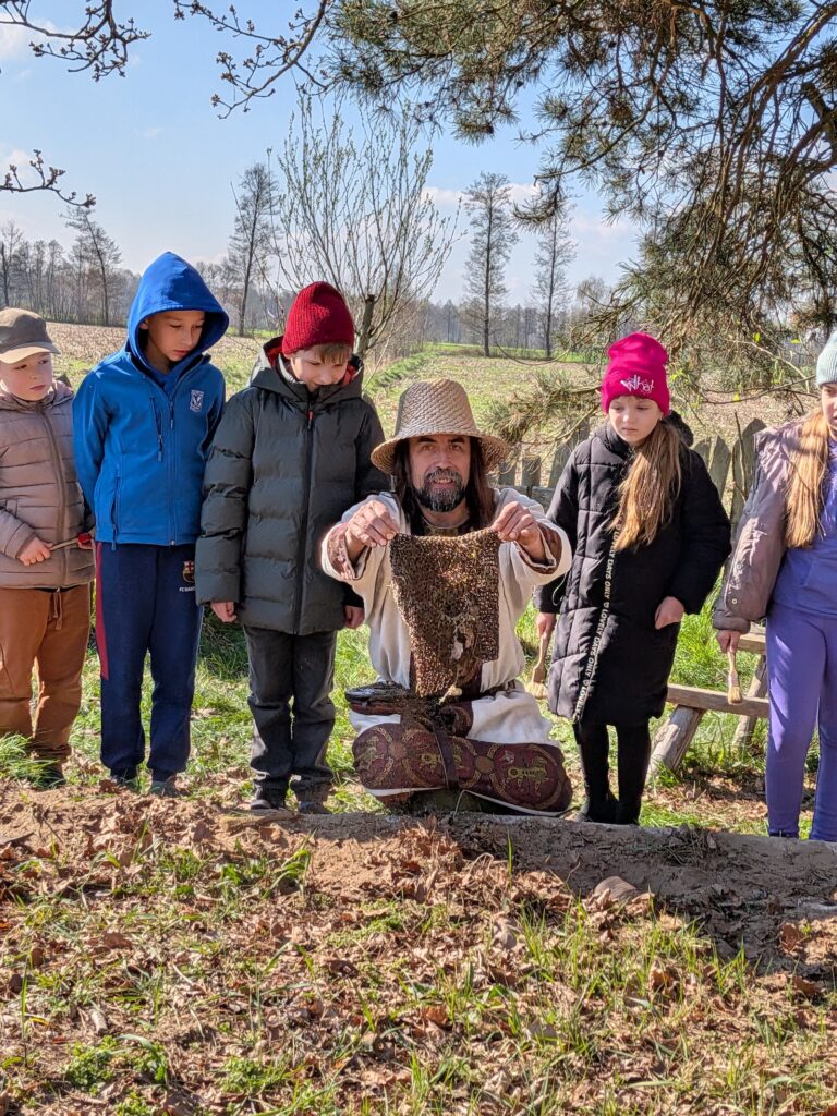 Całe uroczysko zostało przygotowane z ogromną dbałością o szczegóły – od dekoracji, przez naczynia i narzędzia, aż po sposób prowadzenia zajęć. Wszystko to sprawiło, że uczniowie mogli poczuć się jak w prawdziwej podróży w czasie.