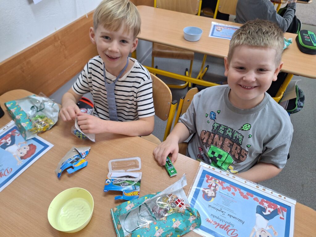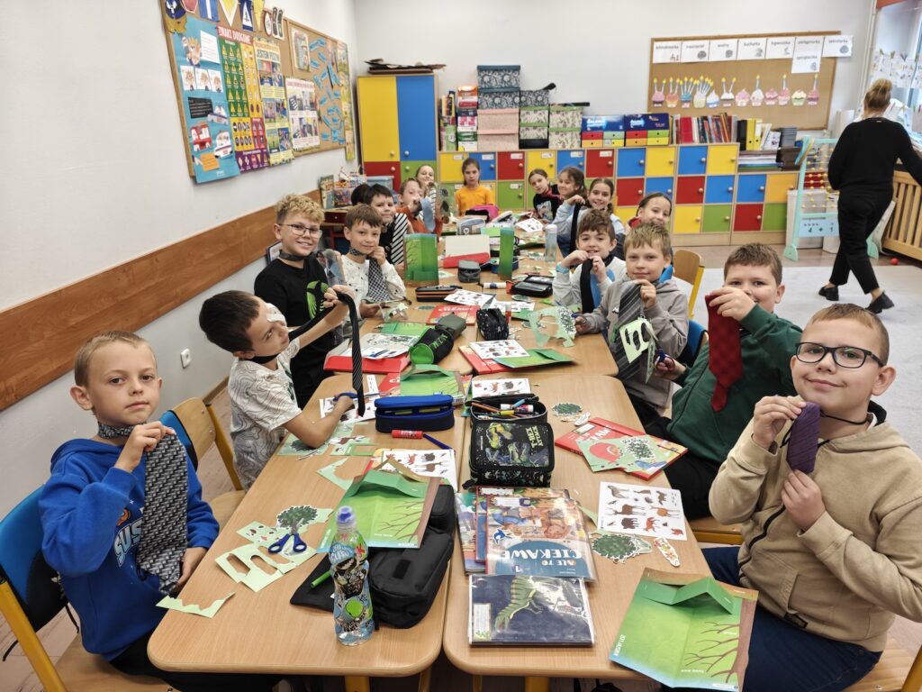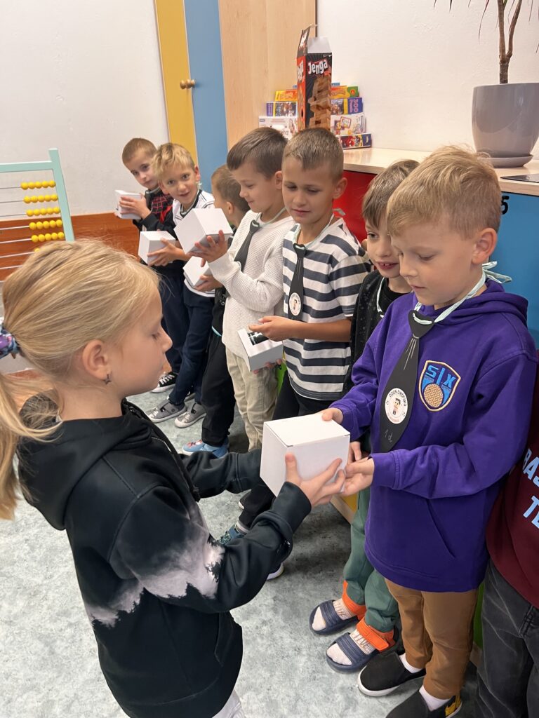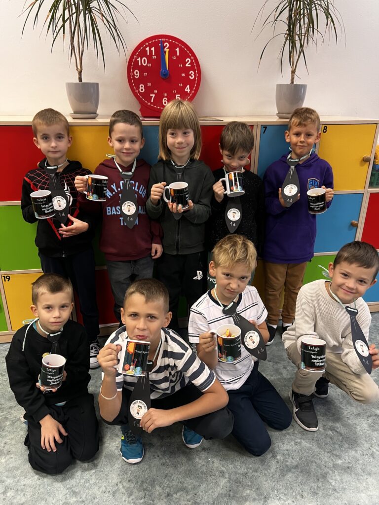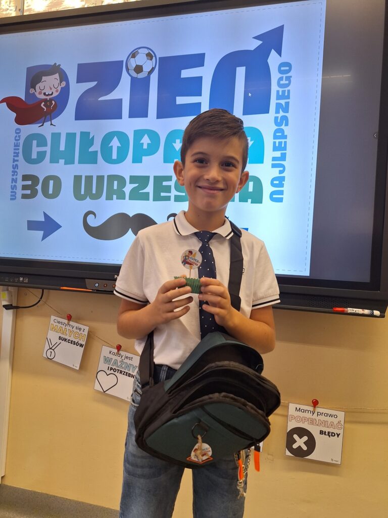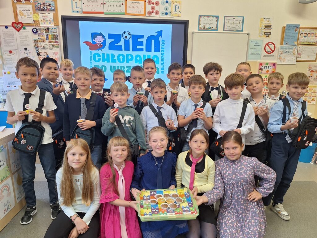 30 września w klasach edukacji wczesnoszkolnej świętowaliśmy Dzień Chłopaka. Każdy chłopiec otrzymał drobny upominek i serdeczne życzenia od koleżanek i nauczycieli. Niektóre klasy wybrały się z tej okazji na różne atrakcyjne zajęcia, takie jak kręgle, warsztaty pizzy, czy harce w krainie zabaw, a wszyscy, którzy pozostali w szkolnych murach równie radośnie spędzili ten wyjątkowy czas. Najmłodsi uczniowie Trójki ochoczo przyłączyli się również do propozycji Samorządu Uczniowskiego, który ogłosił wtorek 30 września Dniem Muchy i Krawata. Wspólne zabawy, życzenia i zaangażowanie, to proste gesty składające się na bezpieczną i przyjazną atmosferę, w której dzieci czują się zauważone i pewne siebie. Tego typu inicjatywy budują poczucie przynależności i wzmacniają pozytywne relacje w zespole klasowym. Cieszmy się z małych rzeczy i zbierajmy cudowne, szkolne wspomnienia!