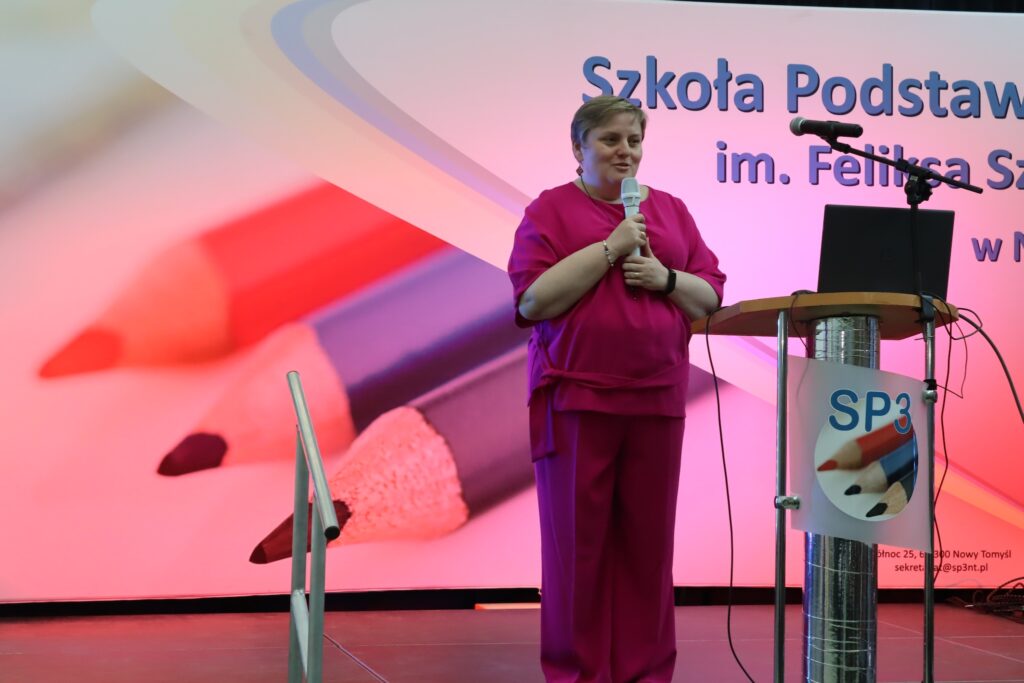 Słowa podziękowania skierował także w stronę Partnerów, którzy wnieśli niezwykle cenny wkład w jakość nowotomyskiej konferencji. Szczególne słowa podziękowania skierował do Grażyny Koby, która od lat jest z uczestnikami do samego końca konferencji i osobiście wręczyła upominki dla najbardziej wytrwałych uczestników. Usłyszeliśmy wiele miłych i pochlebnych słów na temat wysokiego poziomu organizacyjnego i merytorycznego naszej wydarzenia zarówno ze strony uczestników jak i naszych wykładowców i partnerów. Wszyscy podkreślali zaangażowanie organizatorów oraz wzorową postawę naszych uczniów, którzy chętnie służyli pomocą i niezbędnymi informacjami.