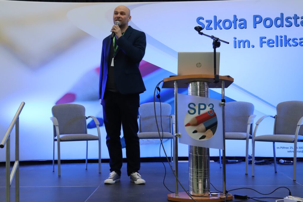 Sławomir Idaszak zaprezentował koncepcję cyfrowej transformacji szkoły, skupiając się na wykorzystaniu Systemów Neonki oraz wirtualnego asystenta AI wspierającego pracę dyrektora. Wskazał, że „zarządzanie szkołą w erze cyfrowej wymaga nowych narzędzi, które usprawniają organizację i komunikację”.