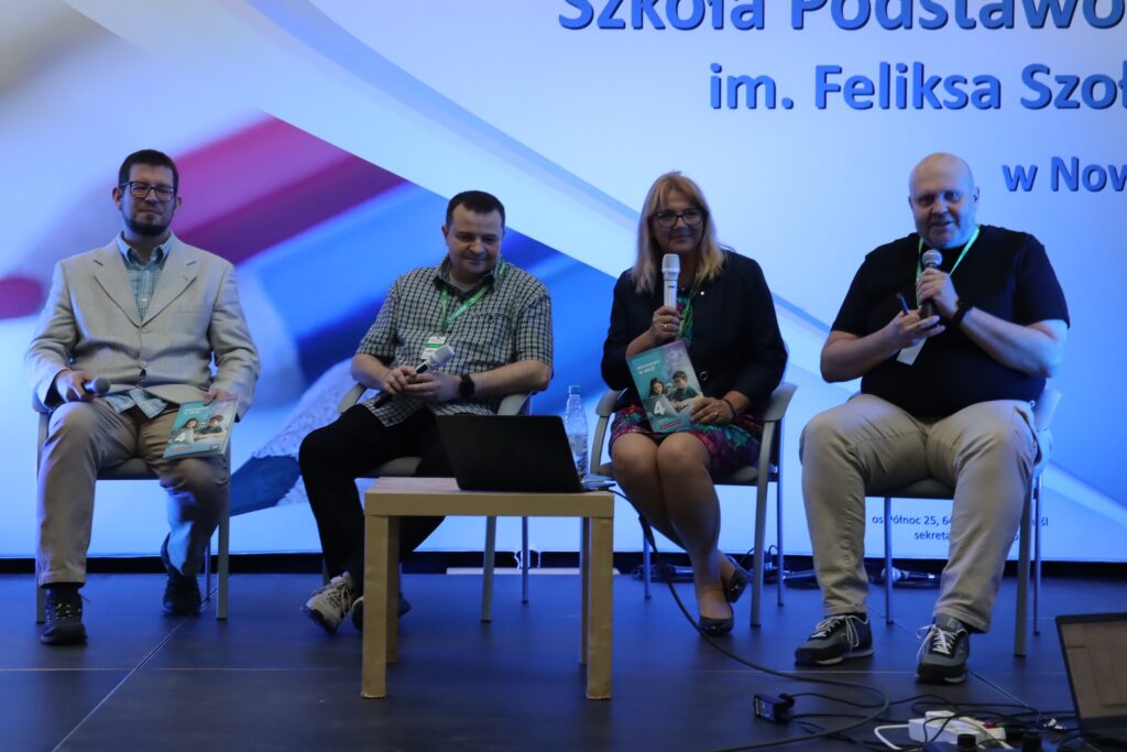 Po przerwie obiadowej odbyły się kolejne prezentacje. Filip Sągała zaprezentował rozwiązania sieciowe dla szkół, akcentując znaczenie bezpieczeństwa infrastruktury IT. Następnie zespół w składzie Beata Chodacka, Janusz S. Wierzbicki, Tomasz Mikołajczyk oraz Janusz Mazur przedstawił projekt „Informatyka w akcji”, proponując konkretne pomysły na rozwijanie kompetencji cyfrowych uczniów, a tym samym dokonując premiery nowego podręcznika informatyki dla klasy czwartej szkoły podstawowej wydawnictwa Nowa Era.