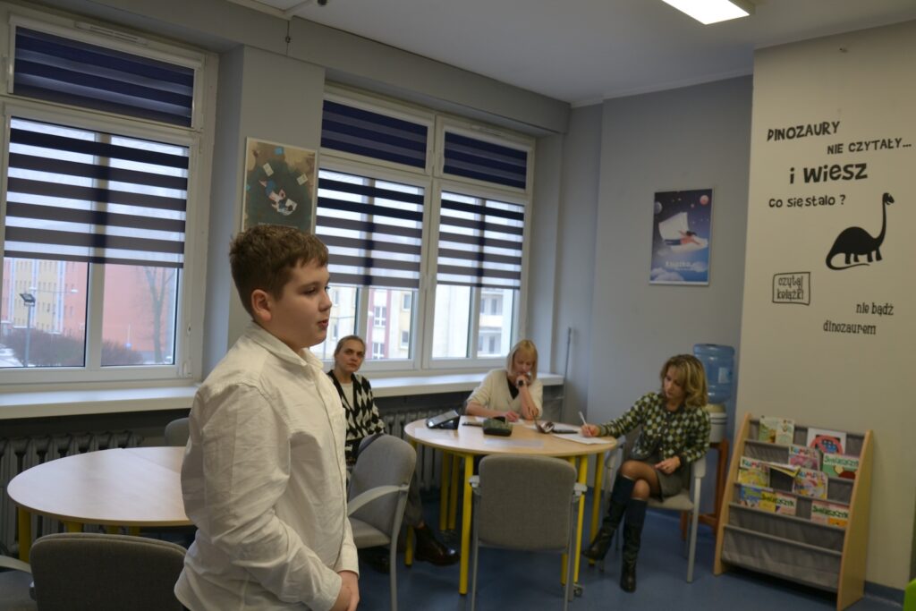 W kategorii klas IV–VI wystąpili: Karol Kliszewski (4a), Oliwia Zgrabka (5b), Anna Soroko (5b), Natan Banasiak (5b), Ignacy Krupiecki (5a), Wojciech Herbeć (6d), Bartosz Pucek (6d) oraz Zuzanna Weselska (6c). Spośród tej grupy jury wyłoniło reprezentantów szkoły do kolejnego etapu. Do półfinału, który odbędzie się w sobotę 7 marca w Poznaniu, zakwalifikowali się Oliwia Zgrabka oraz Wojciech Herbeć.