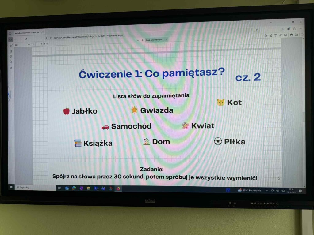 Podczas pierwszych zajęć pt. „Metody skutecznego uczenia się” uczniowie poznali różnorodne sposoby przyswajania wiedzy oraz rozmawiali o tym, jak działa pamięć