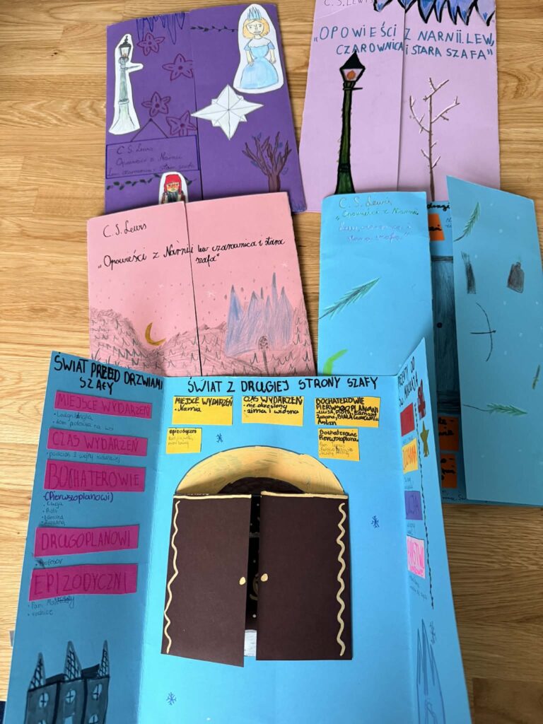 Kolejne zajęcia — „Lapbooki – nauka w kreatywnej formie” — pozwoliły uczniom połączyć wiedzę z twórczym działaniem. Powstały kolorowe, pomysłowe lapbooki, które stały się osobistymi „minicentrum wiedzy” i świetnym materiałem powtórkowym.