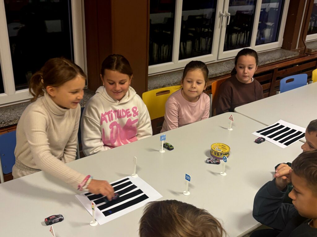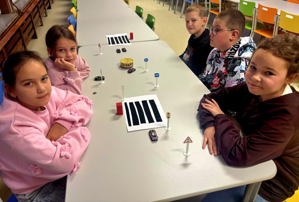Podczas spotkań graliśmy w edukacyjne gry multimedialne, planszówki i memory ze znakami drogowymi, rozwiązywaliśmy quizy i zagadki na temat bezpieczeństwa w ruchu drogowym, oglądaliśmy filmy edukacyjne, budowaliśmy makiety na których dochodziło do różnych zdarzeń drogowych, a które później wspólnie omawialiśmy. Zajęcia były nie tylko źródłem wiedzy, ale też świetnej zabawy. Dzięki nim uczniowie mogli w praktyczny i atrakcyjny sposób utrwalić zasady bezpiecznego poruszania się po drodze oraz zrozumieć, jak ważna jest ostrożność i odpowiedzialność.