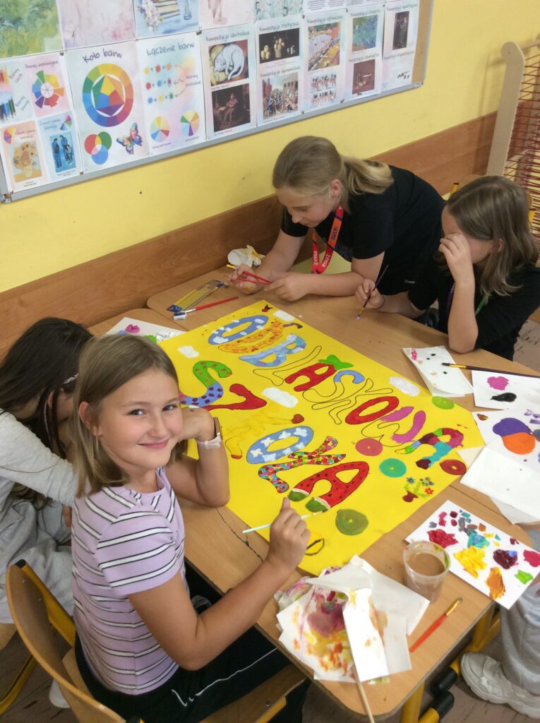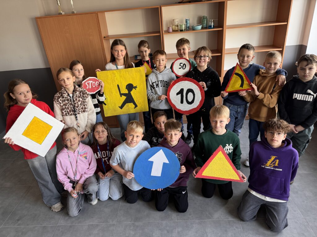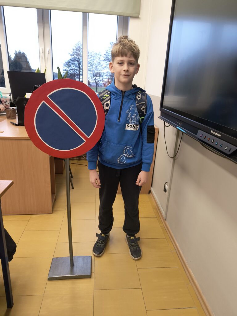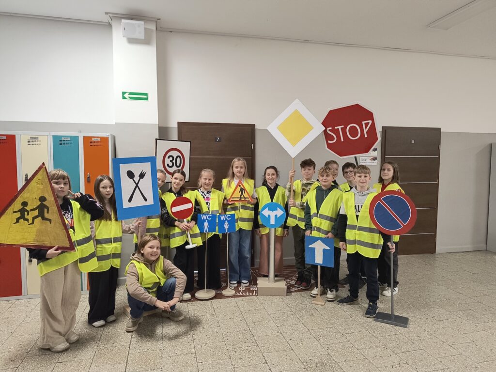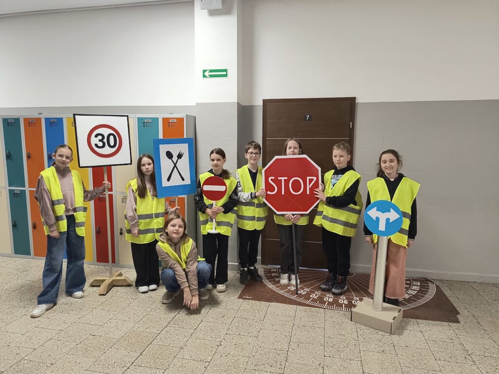 Powstałe „giga znaki drogowe” zdobią teraz szkolne korytarze i sale lekcyjne, przyciągając zaciekawione spojrzenia. Dzięki nim szkoła stała się barwną, edukacyjną i inspirującą przestrzenią.