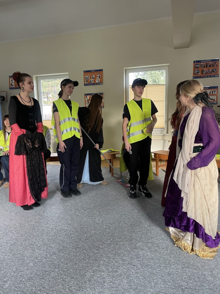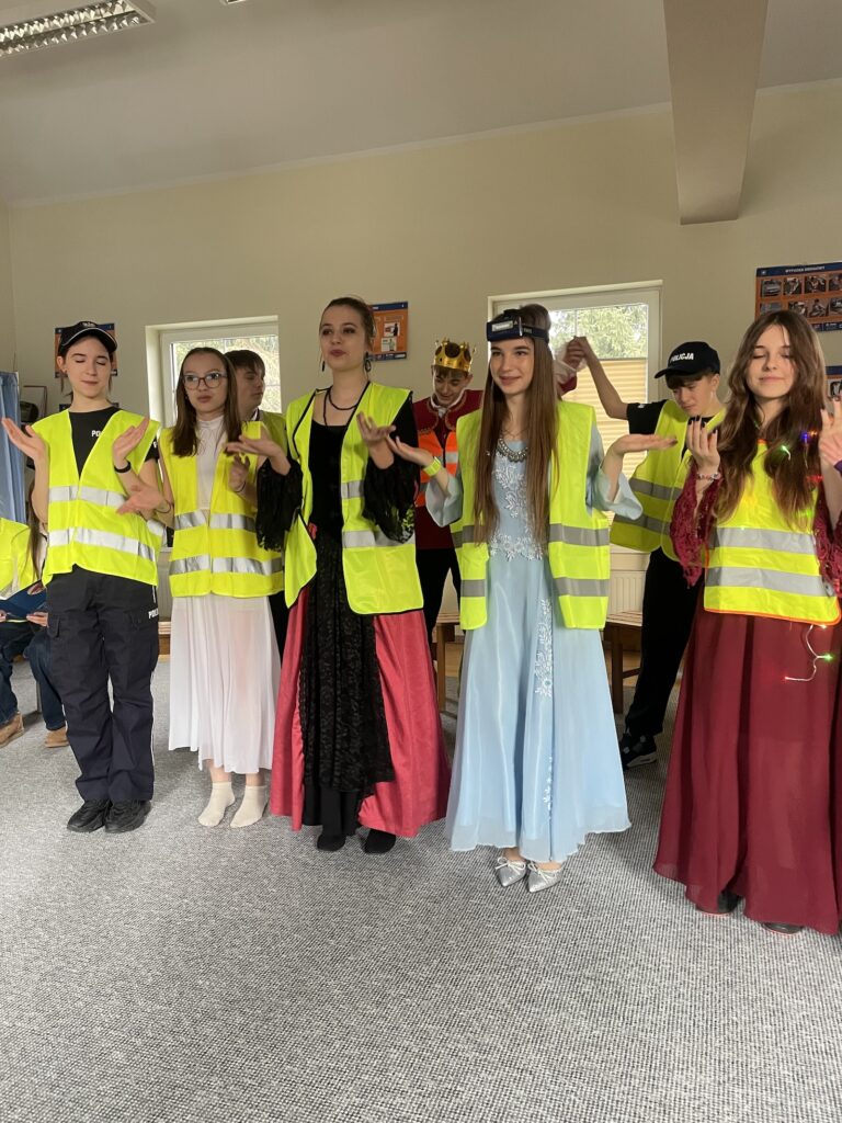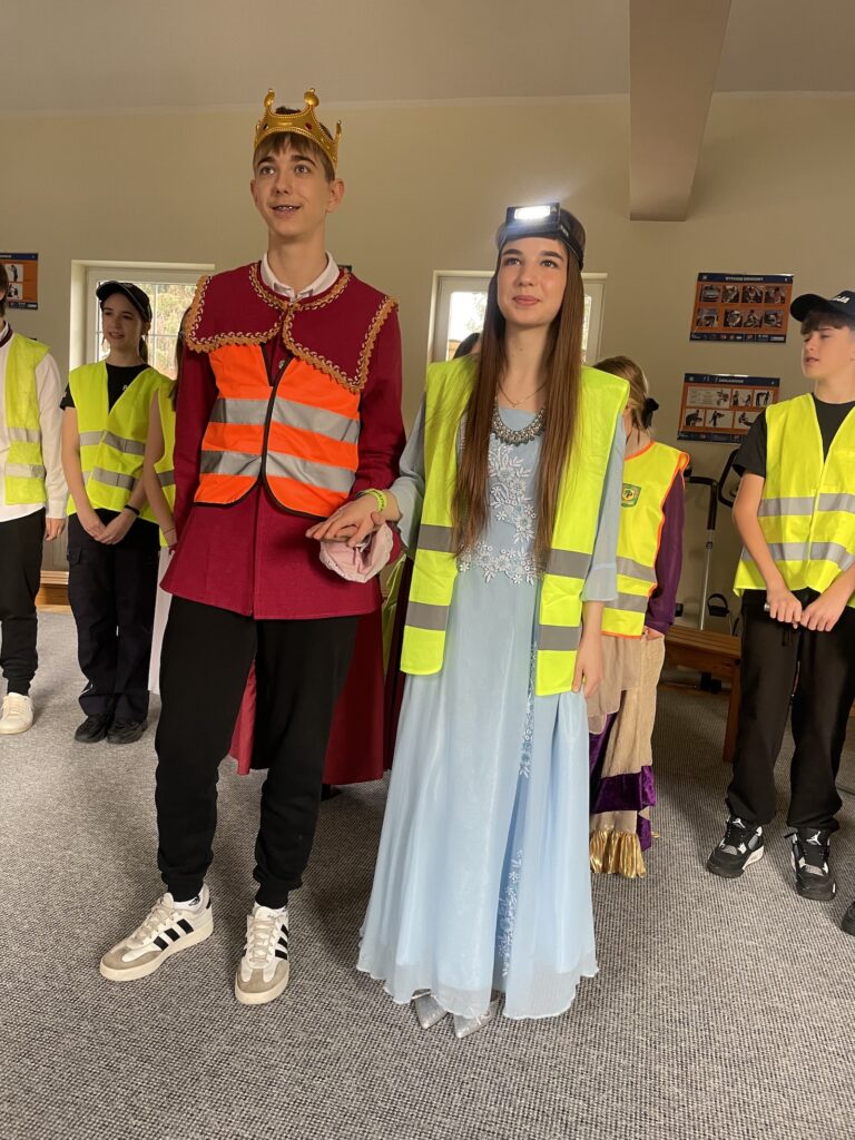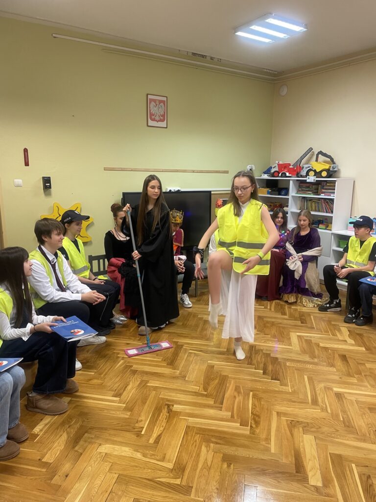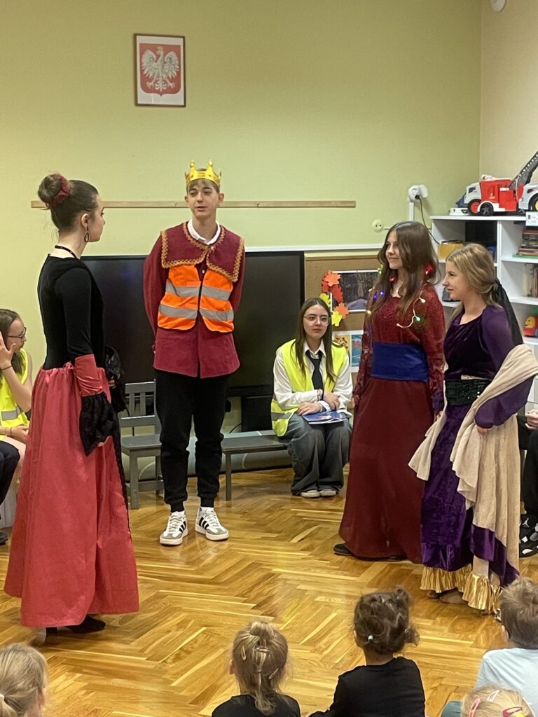 W ramach szkolnej akcji edukacyjnej przygotowaliśmy przedstawienie „Odblaskowy Kopciuszek” — bajkę dobrze znaną, ale opowiedzianą na nowo, z humorem i ważnym przesłaniem: odblaski ratują życie. Najpierw odwiedziliśmy przedszkolaków, którzy słuchali z szeroko otwartymi oczami i reagowali na każdy błyszczący element sceny. Dla wielu z nich największą atrakcją nie był nawet sam Kopciuszek, lecz… migające odblaskowe buty i czarodziejska kamizelka Wróżki Odblaskowej!