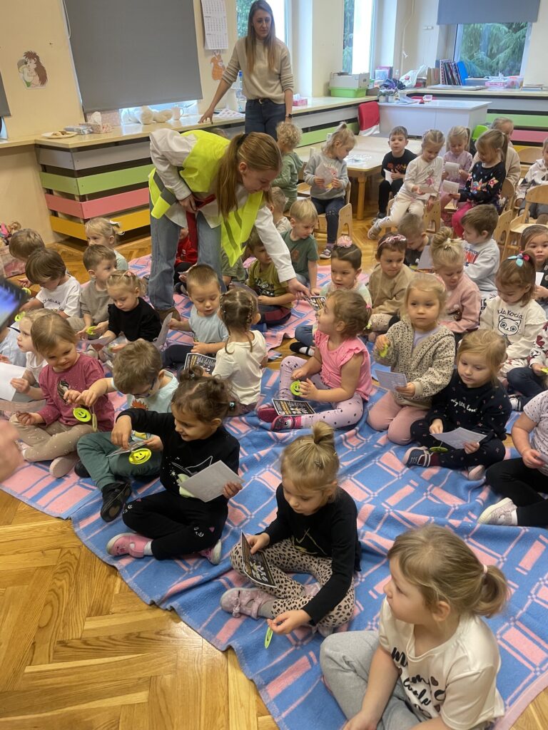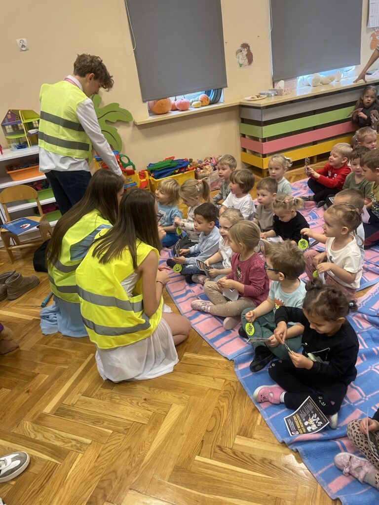 Po zakończeniu spektaklu zarówno mali widzowie, jak i ci bardziej doświadczeni życiowo, otrzymali odblaski z logo naszej szkoły oraz specjalnie przygotowaną ulotkę o zasadach bezpiecznego poruszania się po zmroku. To drobne przedmioty, ale mogą zrobić ogromną różnicę na drodze.