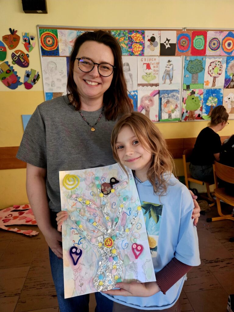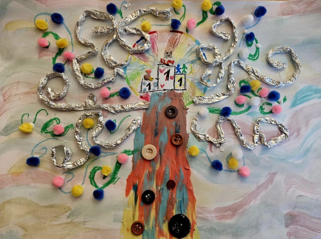 Inspiracją do działań plastycznych stało się „Drzewo Życia” – motyw niezwykle bogaty znaczeniowo i głęboko zakorzeniony w kulturze. Drzewo od wieków symbolizuje wzrost, rozwój i ciągłość, ale także siłę płynącą z korzeni – fundamentów, które nas kształtują. W kontekście rodzinnych warsztatów nabiera ono szczególnego znaczenia: korzenie można odczytać jako wartości wyniesione z domu, tradycje i doświadczenia budujące tożsamość, pień jako stabilność i poczucie bezpieczeństwa, a rozgałęziająca się korona to relacje, rozwój i indywidualne drogi każdego z członków rodziny.