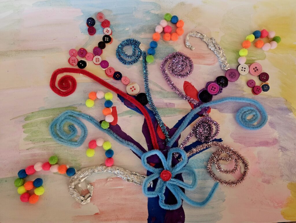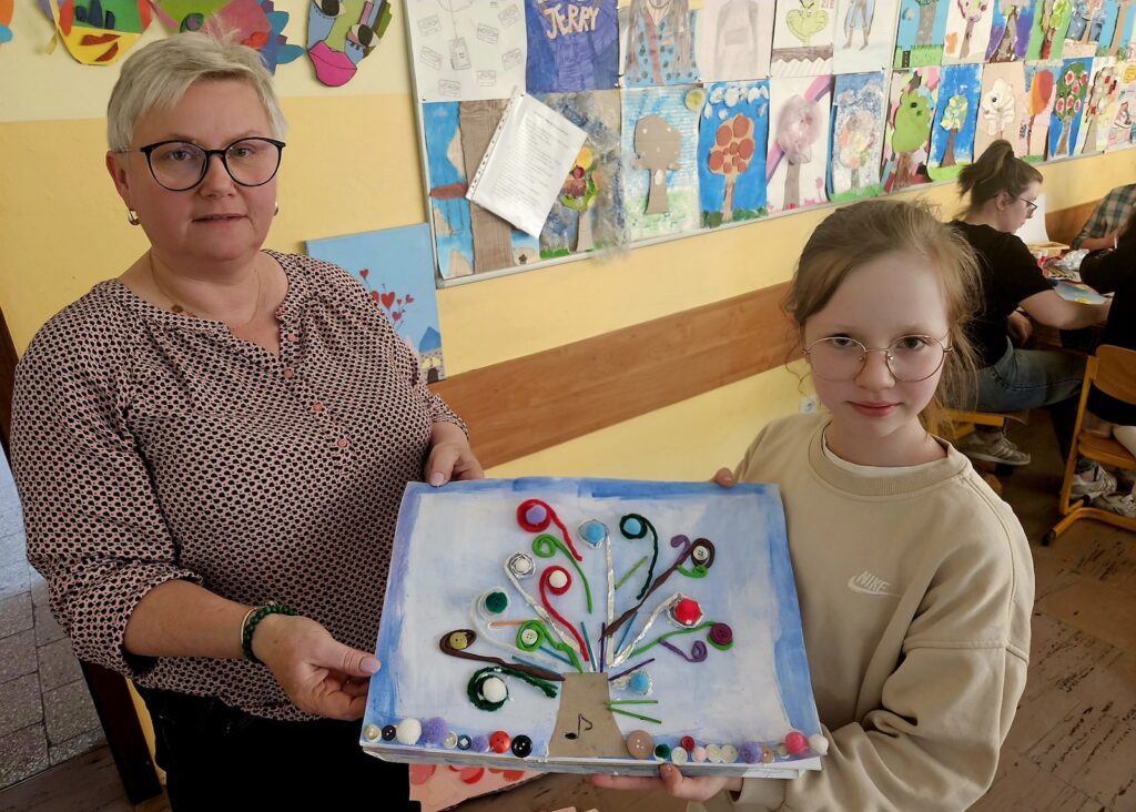 Powstałe „Drzewa Życia” zachwycały różnorodnością i pomysłowością. Uczestnicy pracowali w technice mieszanej, łącząc wiele materiałów i faktur – od plasteliny, przez druciki kreatywne, kolorowe pomponiki, guziki i folię aluminiową, po szary papier pakowy, farby akwarelowe, pastele, cekiny i brokat. Wyobraźnia uczestników zdawała się nie mieć granic, a każda praca była niepowtarzalną, wizualną historią rodziny.