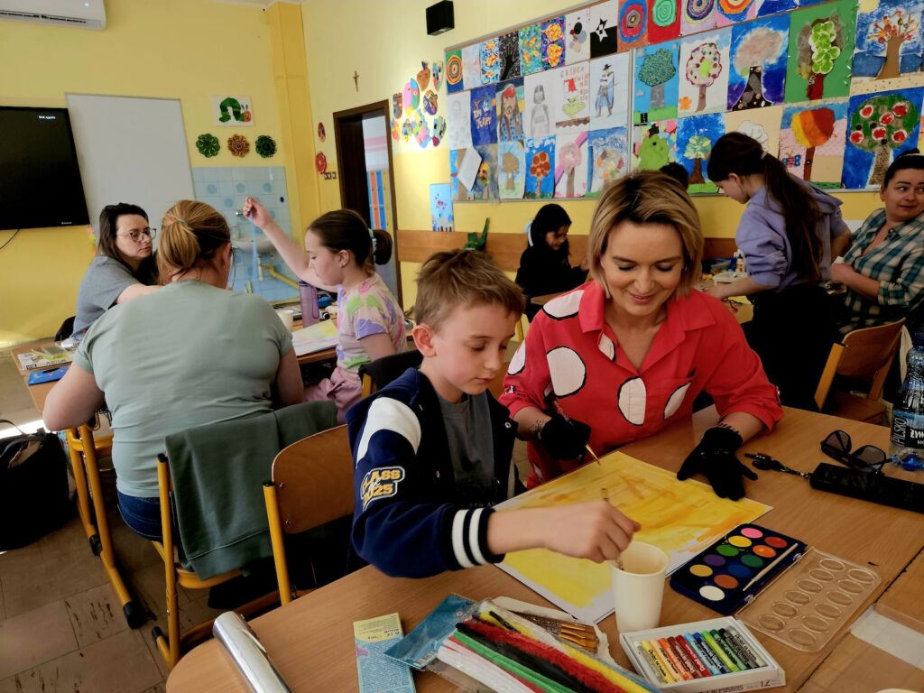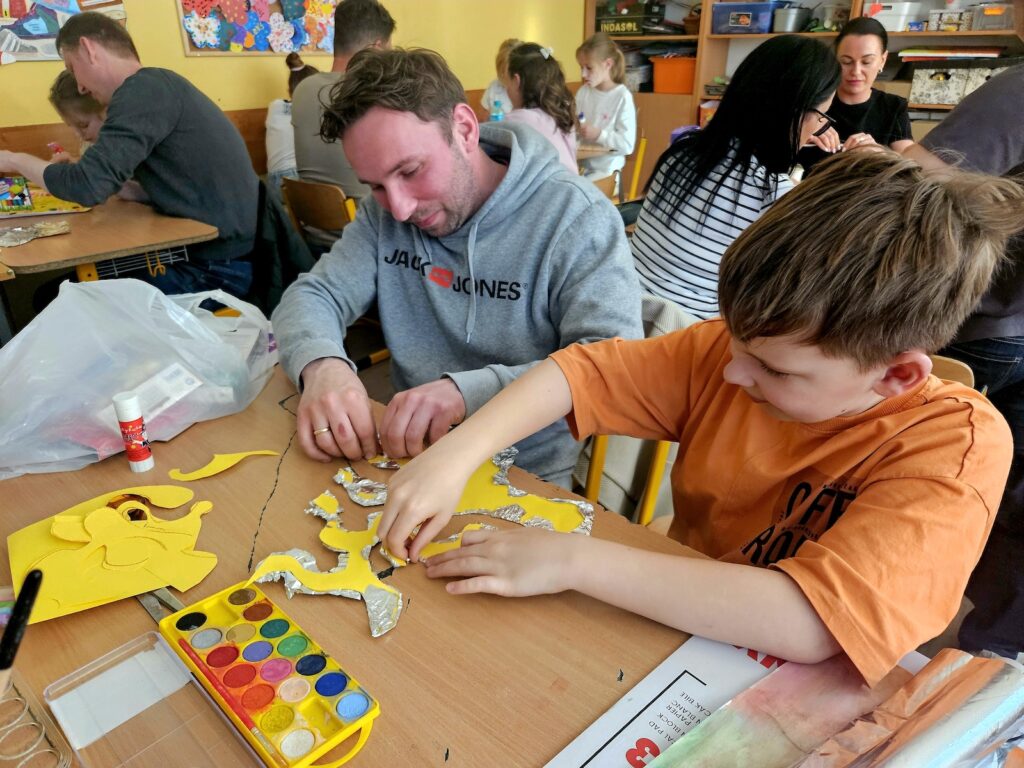 We wtorek 28 kwietnia w pracowni plastycznej odbyło się wyjątkowe spotkanie z cyklu „Poznaj się z…”. Tym razem zaprosiłam do wspólnego działania nie tylko uczniów klas 1–3, ale także ich rodziców i bliskich. Pracownia tego dnia prawdziwie tętniła życiem i twórczą energią! 😊