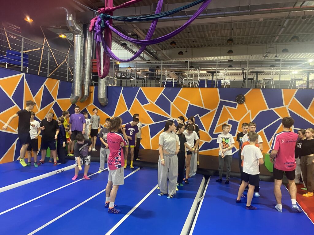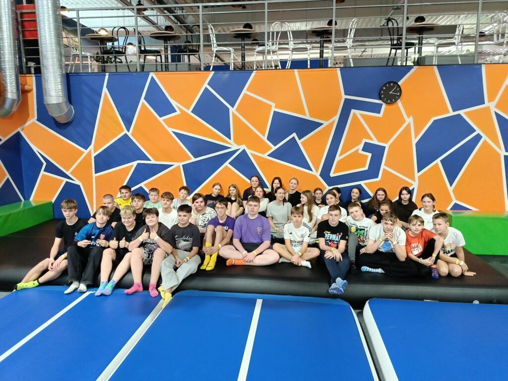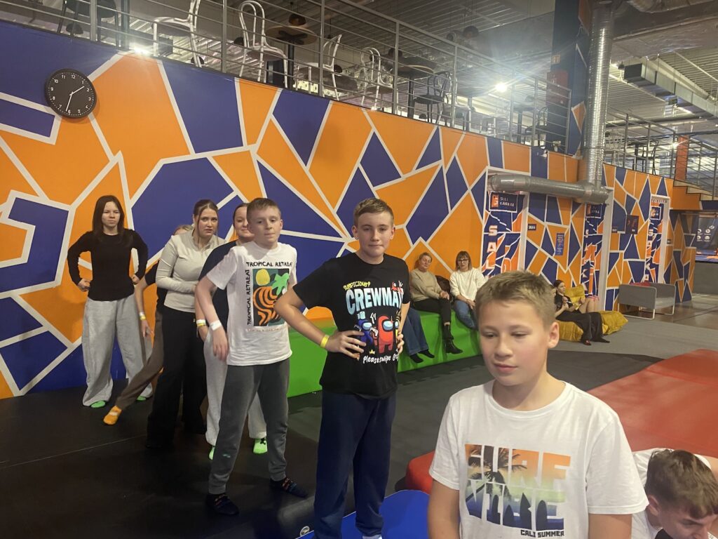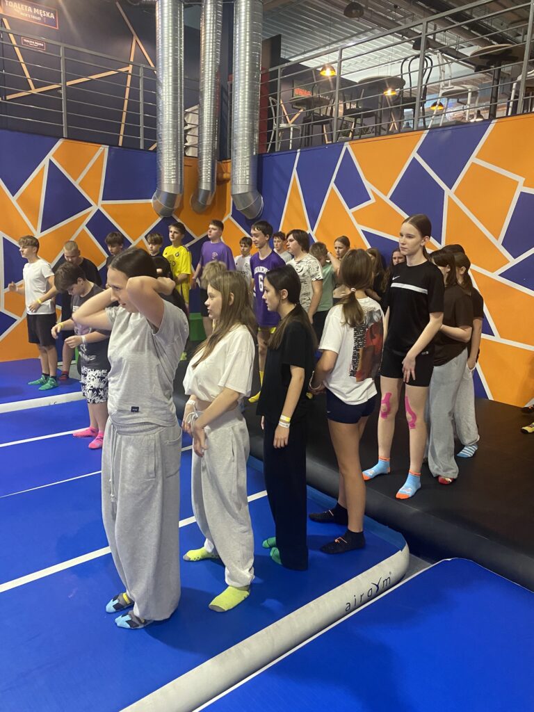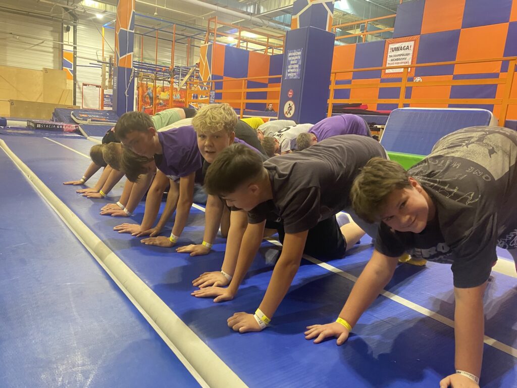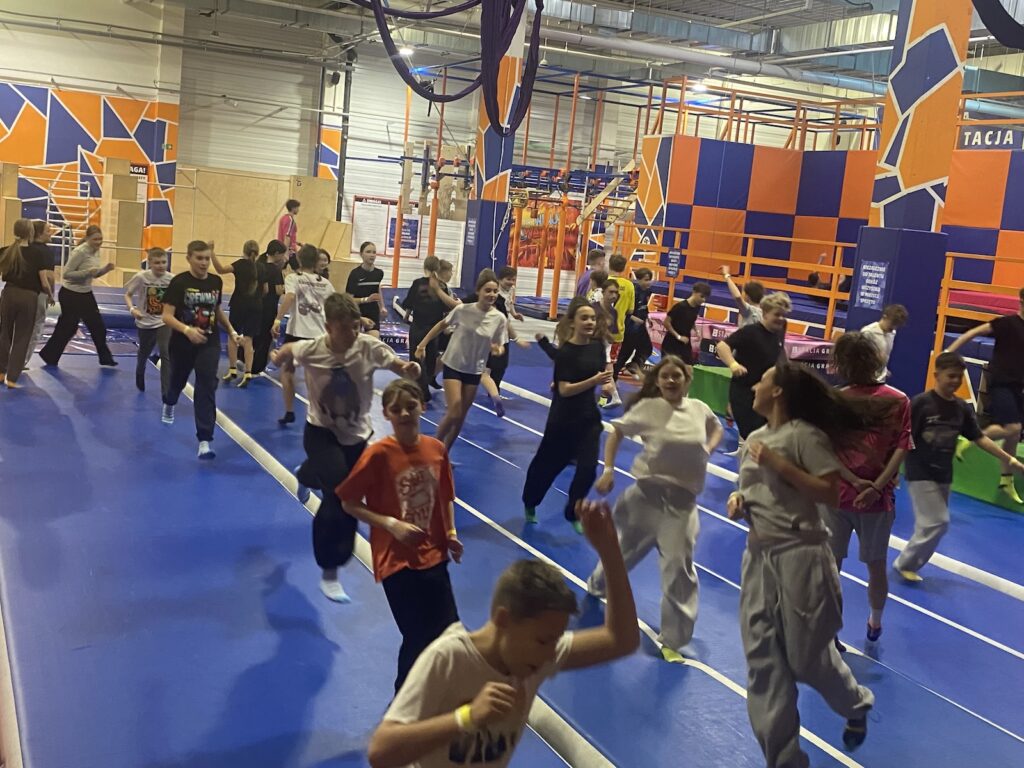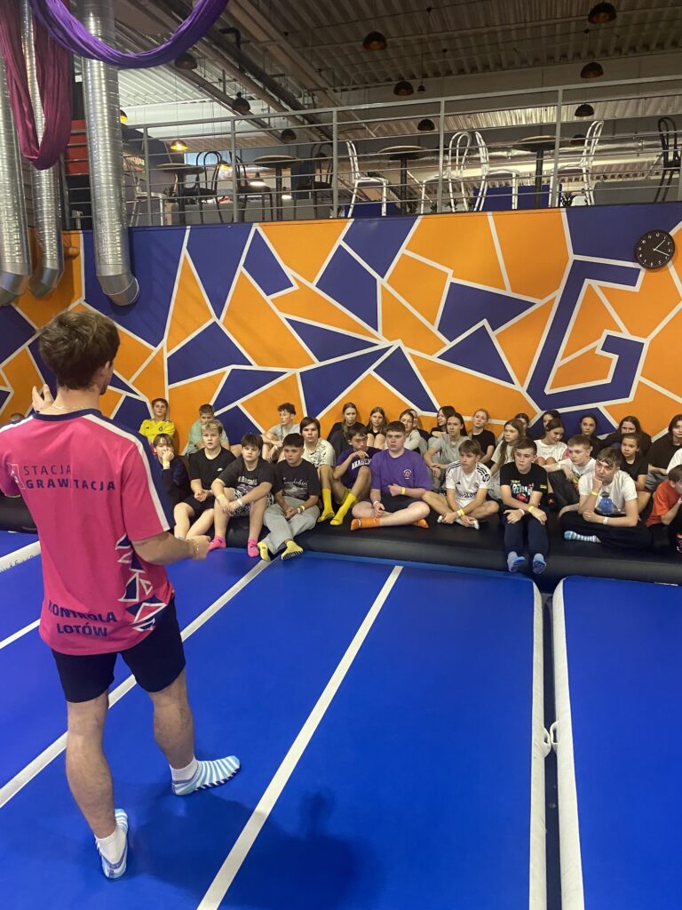 Najważniejszą częścią wyjazdu była wizyta w Parku Trampolin Stacji Grawitacja. Celem wizyty było wyrabianie nawyku aktywnego spędzania wolnego czasu oraz rozwijanie zainteresowania sportem. Pod okiem wykwalifikowanego instruktora uczniowie uczestniczyli w intensywnych zajęciach ruchowych ,mogli spróbować swoich sił na trampolinach, torach przeszkód i w strefach akrobatycznych oraz wykonywali różnorodne ćwiczenia ruchowe. Dzięki obecności instruktora zajęcia były bezpieczne, a jednocześnie pełne wyzwań i sportowej zabawy. Każdy mógł sprawdzić swoją koordynację, siłę i wytrzymałość, łącząc naukę z radością z ruchu.