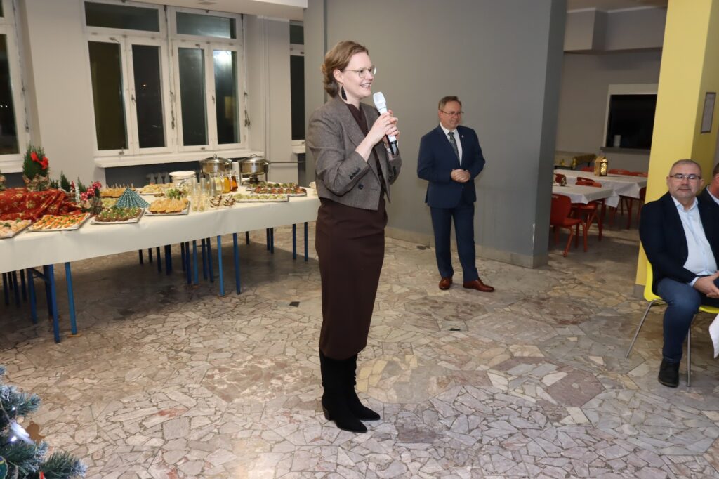 Najlepsze życzenia pomyślności w nowym roku w imieniu własnym oraz burmistrza Marcina Brambora i przewodniczącego Marka Ratajczaka złożyła Adrianna Brzostowska. Pani Burmistrz podkreśliła, że przed społecznością naszej szkoły pojawi się kolejne wyzwanie, gdyż w tym roku planowane jest rozpoczęcie procesu termomodernizacji naszej szkoły. Wyraziła jednak przekonanie, że tak dobrze zorganizowany, pełen zapału i odpowiedzialności zespół z pewnością z tym wyzwaniem sobie poradzi.