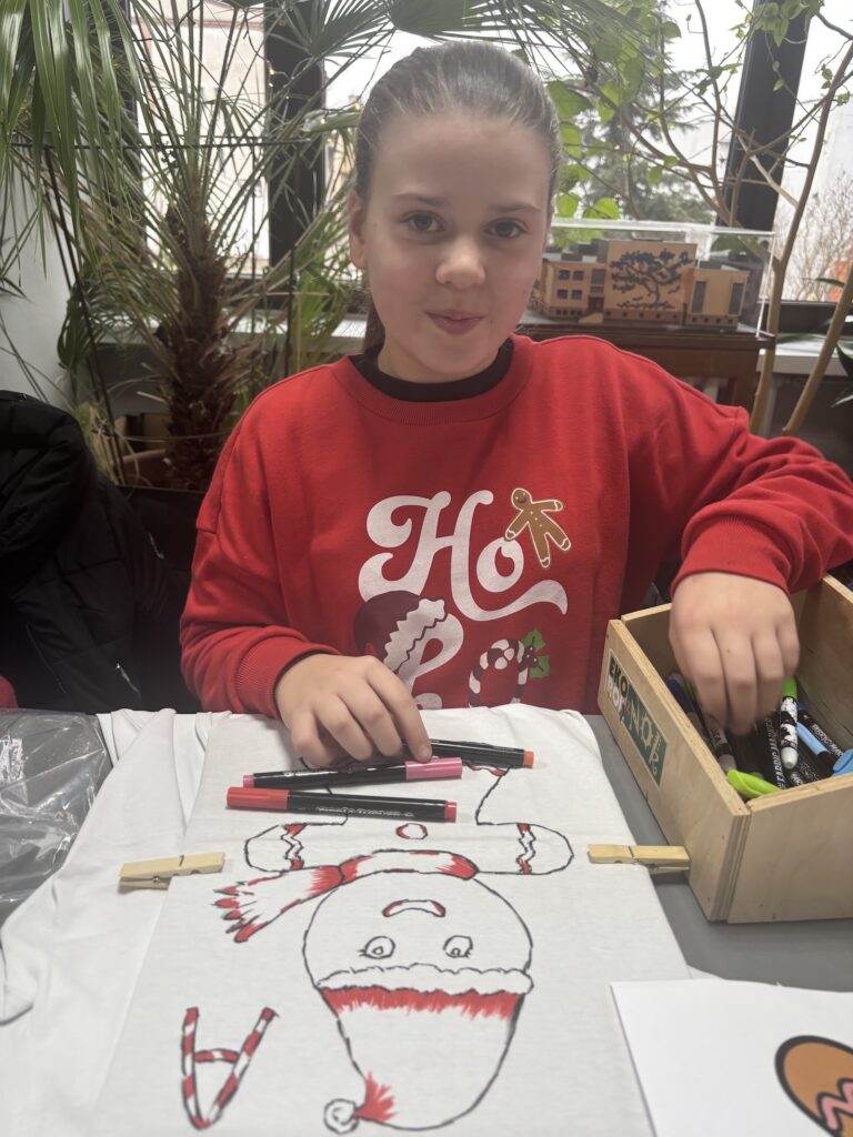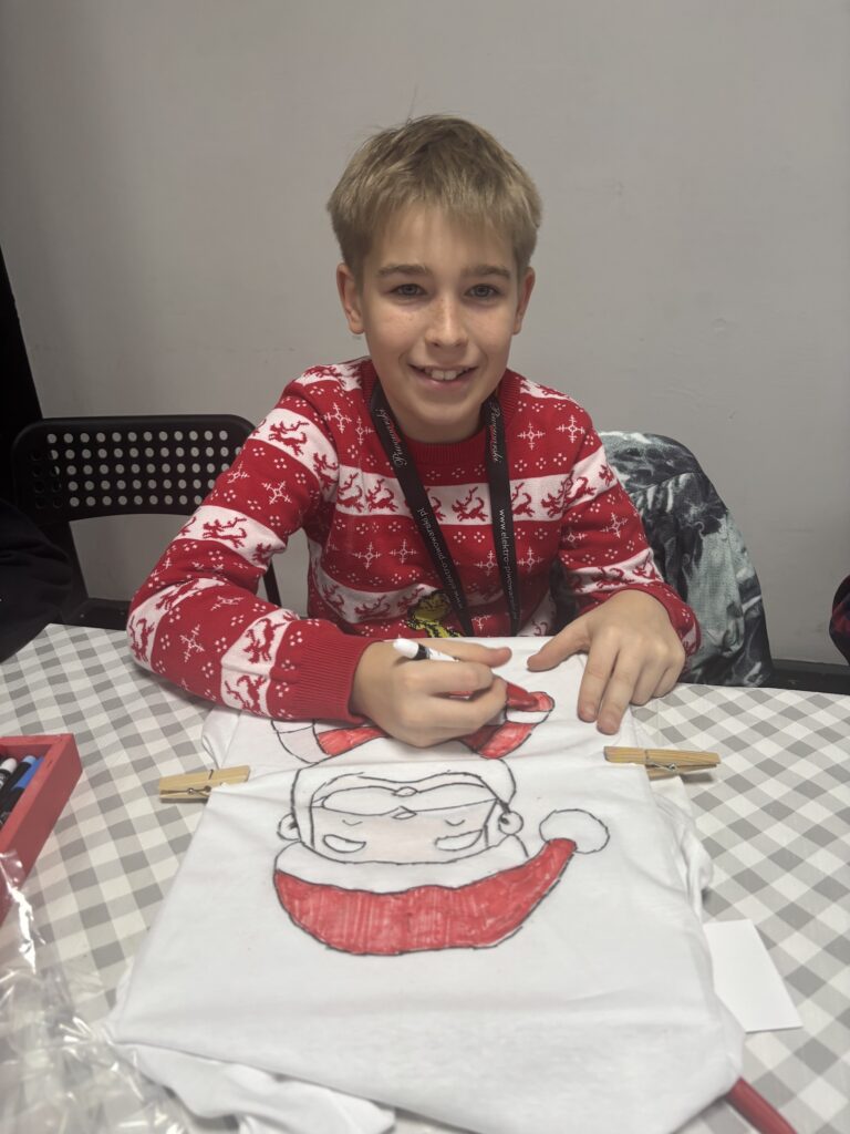 W ramach świątecznych przygotowań uczniowie klasy 4b wraz ze swoją wychowawczynią wzięli udział w wyjątkowych warsztatach zorganizowanych w Nowotomyskim Ośrodku Kultury. Było to niezwykle twórcze i inspirujące spotkanie, podczas którego dzieci miały okazję zaprojektować i stworzyć własne koszulki według autorskich pomysłów.