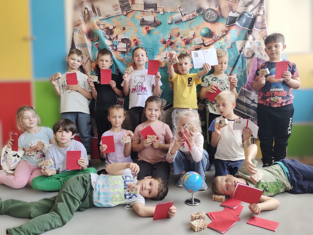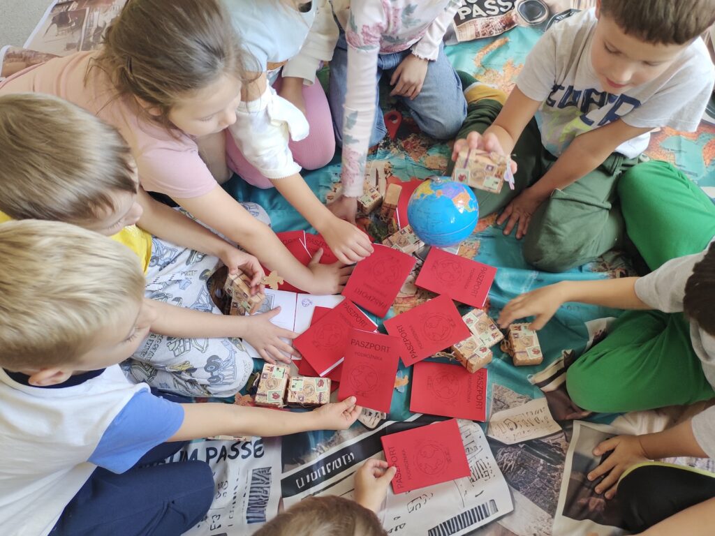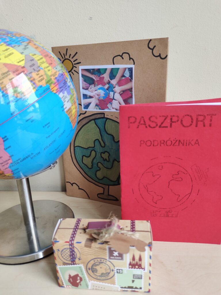 Zanim jednak ruszyli w drogę, uczniowie przygotowali się jak prawdziwi globtroterzy. Powstały paszporty, które zapełnią się pieczątkami z odwiedzanych miejsc, pamiętniki podróżnika, w których zapisywać będą swoje przygody, oraz małe walizki pełne marzeń i ciekawości świata. Dzieci poznały również kulę ziemską i mapę świata, ucząc się odnajdywać kontynenty, oceany i dalekie lądy.