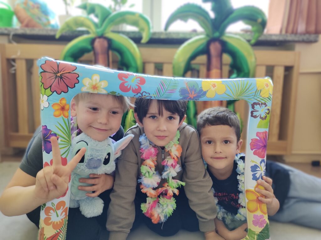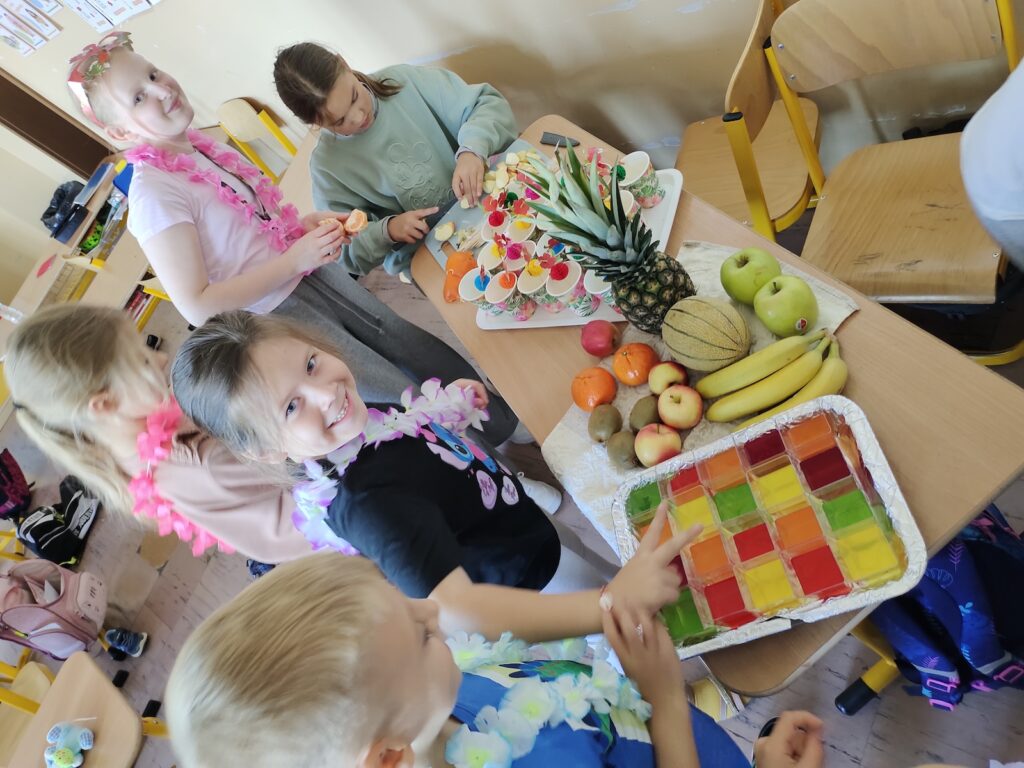 Pierwszy przystanek tej niezwykłej podróży prowadził na słoneczne Hawaje. Krzysztof Kolumb odkrył Amerykę, ale to nasi pierwszoklasiści dokonali prawdziwego szkolnego odkrycia – odnaleźli 50. stan USA! Choć w Polsce jesień rozgościła się na dobre, w sali lekcyjnej rozbrzmiała hawajska muzyka, a na „plaży” panowała gorąca atmosfera. To właśnie tam uczniowie radośnie pożegnali lato, przenosząc się w wyobraźni w sam środek tropikalnego raju.
