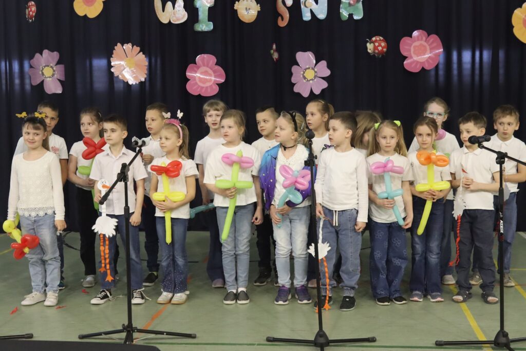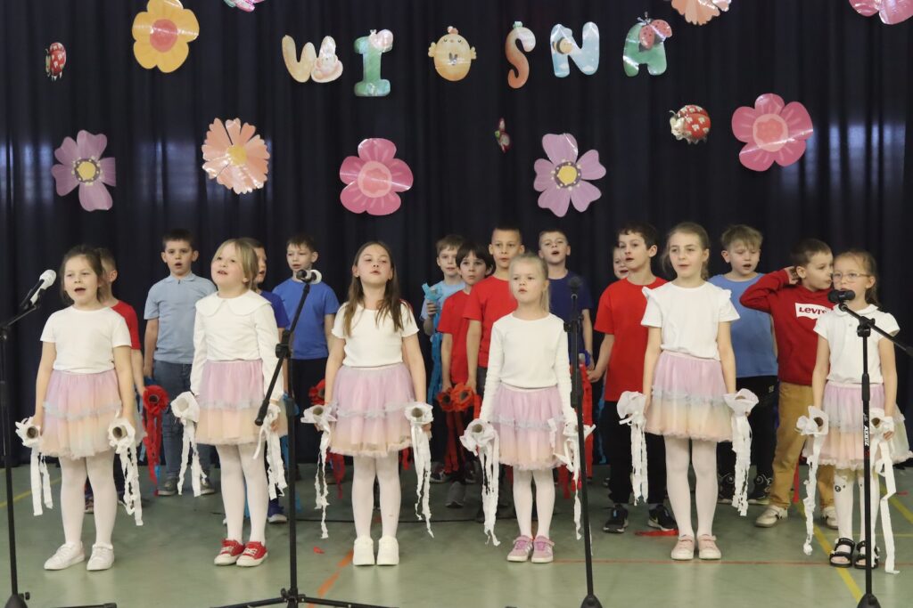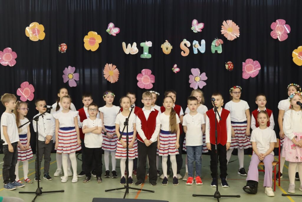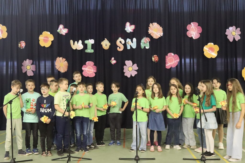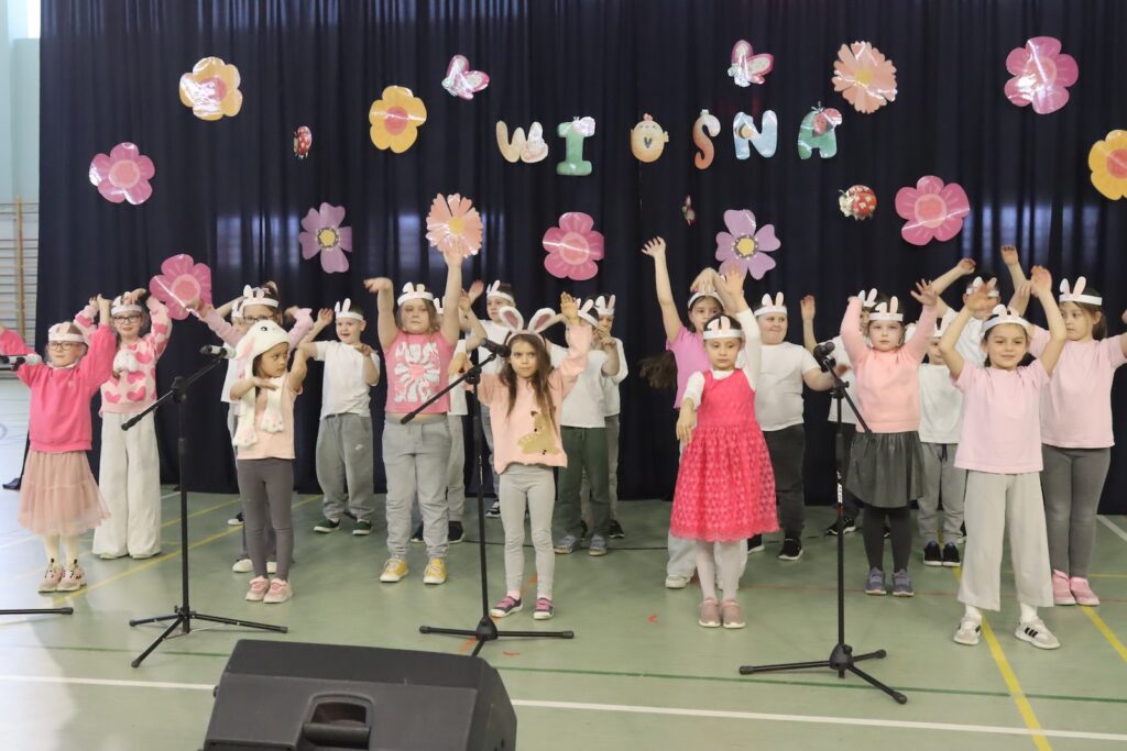 W przeglądzie wzięły udział klasy I–III, które przygotowały różnorodne interpretacje piosenek o tematyce wiosennej. Dzieci występowały zarówno indywidualnie, jak i w grupach, prezentując nie tylko swoje umiejętności wokalne, ale również taneczne i aktorskie. Kolorowe stroje, wiosenne dekoracje oraz uśmiechy na twarzach uczestników sprawiły, że sala gimnastyczna zamieniła się w prawdziwą krainę budzącej się do życia przyrody.