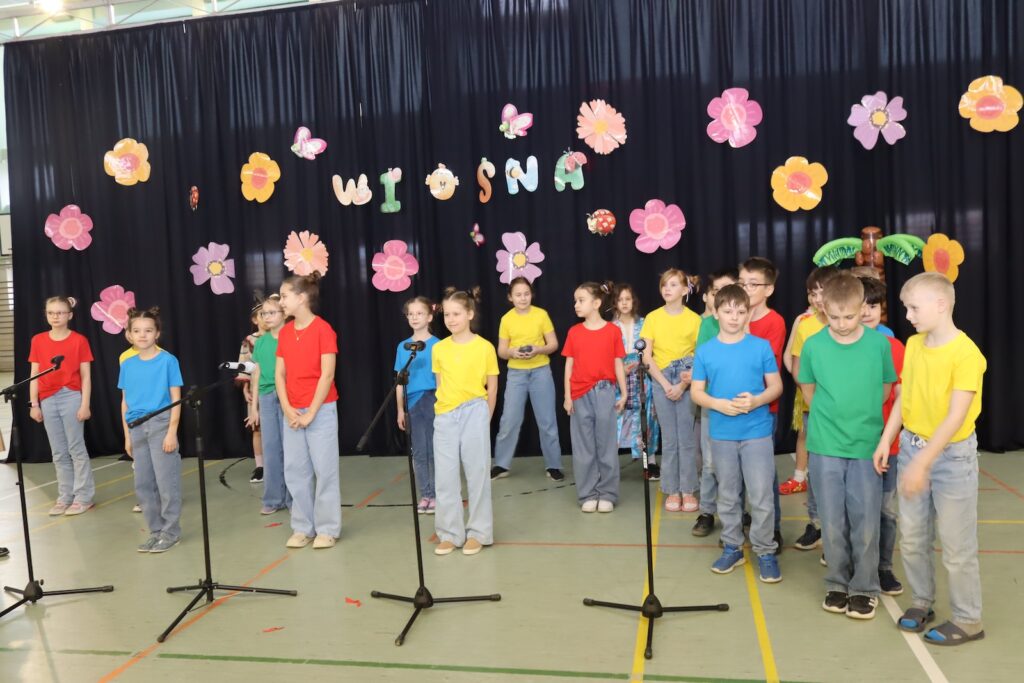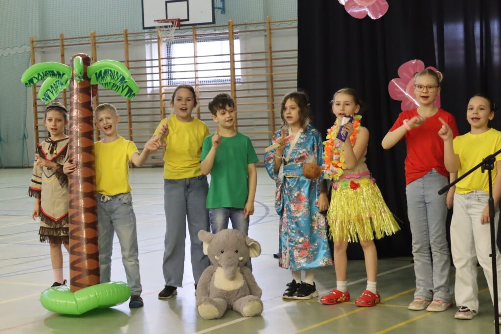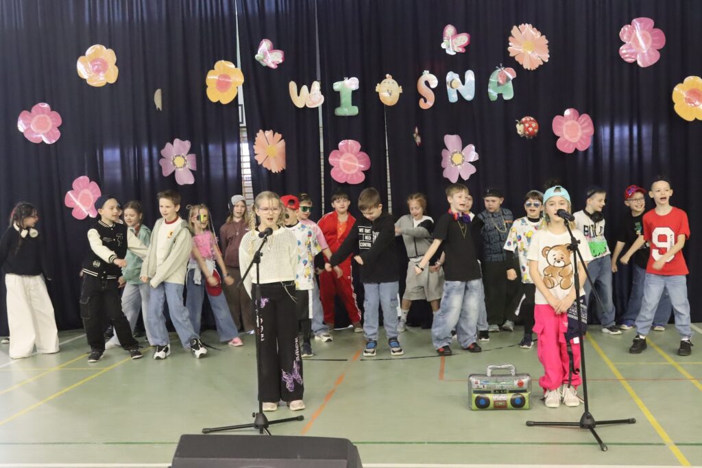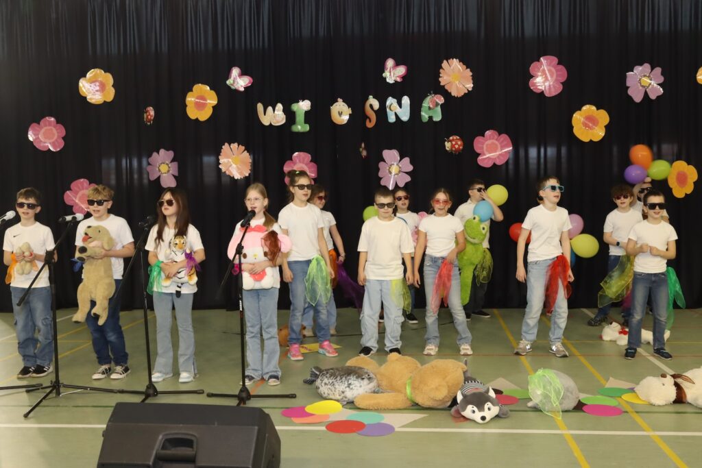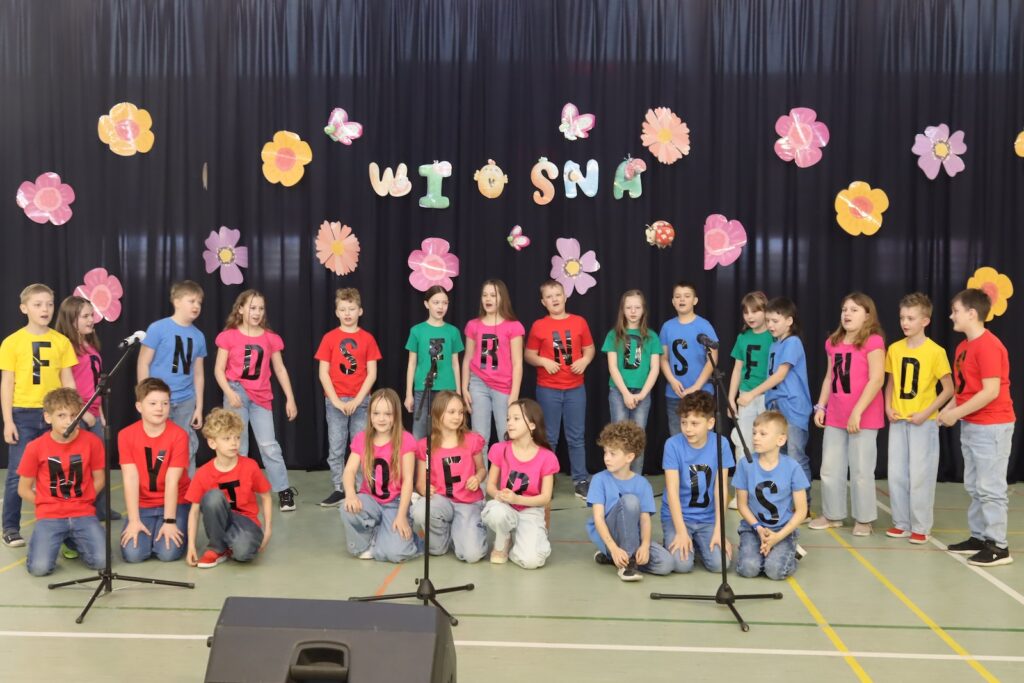 W przeglądzie wzięły udział klasy I–III, które przygotowały różnorodne interpretacje piosenek o tematyce wiosennej. Dzieci występowały zarówno indywidualnie, jak i w grupach, prezentując nie tylko swoje umiejętności wokalne, ale również taneczne i aktorskie. Kolorowe stroje, wiosenne dekoracje oraz uśmiechy na twarzach uczestników sprawiły, że sala gimnastyczna zamieniła się w prawdziwą krainę budzącej się do życia przyrody.
