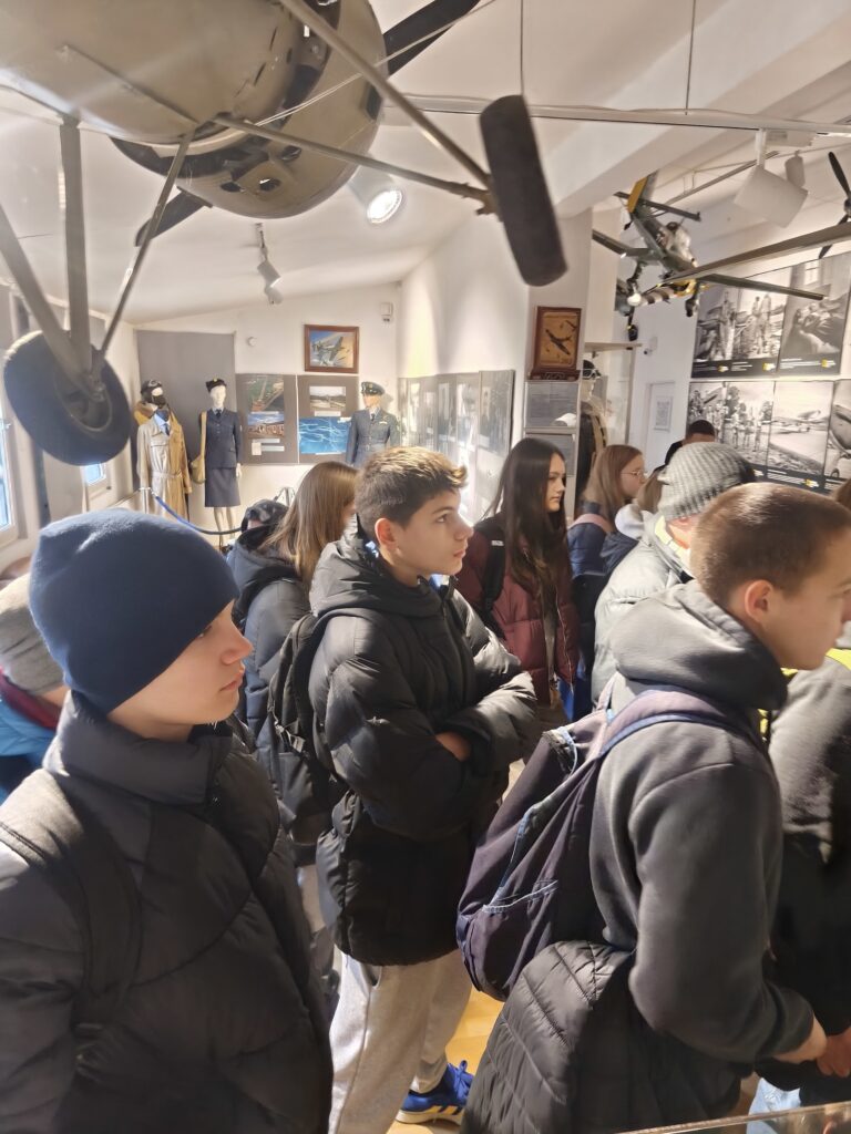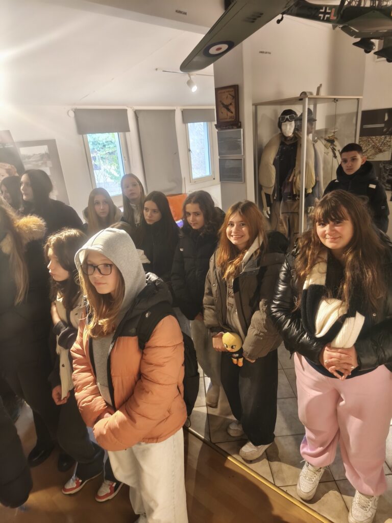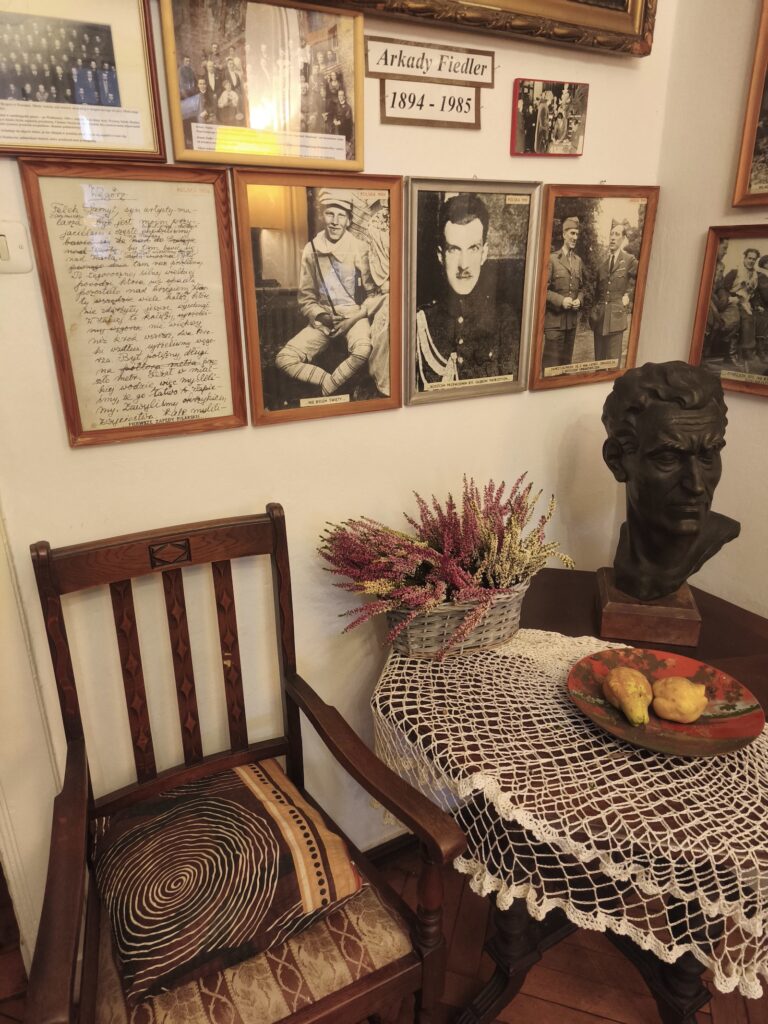 Uczniowie mogli zobaczyć miejsce, w którym mieszkał i tworzył Arkady Fiedler – pisarz, podróżnik i reportażysta. Zwiedzanie rozpoczęło się w głównym budynku muzeum, gdzie przewodnik opowiedział o życiu Fiedlera, jego wyprawach oraz okolicznościach powstania „Dywizjonu 303”. Młodzież miała okazję obejrzeć oryginalne egzemplarze książek, fotografie lotników oraz pamiątki z czasów II wojny światowej. Duże wrażenie na uczniach wywarły modele samolotów, w tym wierna rekonstrukcja myśliwca Hawker Hurricane – maszyny, na której latali polscy piloci z legendarnego dywizjonu. Przewodnik szczegółowo wyjaśnił, jak wyglądała codzienna praca pilotów i jakie wyzwania stawały przed nimi w czasie Bitwy o Anglię.