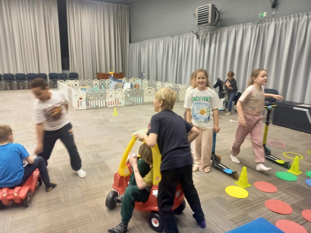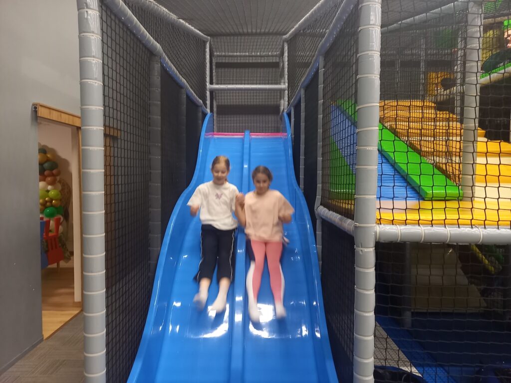 Dla dzieci była to doskonała okazja do wspólnej zabawy poza murami szkoły. Sala zabaw oferuje wiele atrakcji, które sprzyjają ruchowi, rozwijają sprawność fizyczną oraz uczą współpracy i wzajemnego wsparcia. Uczniowie z ogromnym entuzjazmem korzystali z dostępnych urządzeń, takich jak zjeżdżalnie, tory przeszkód czy strefy zabaw zespołowych.