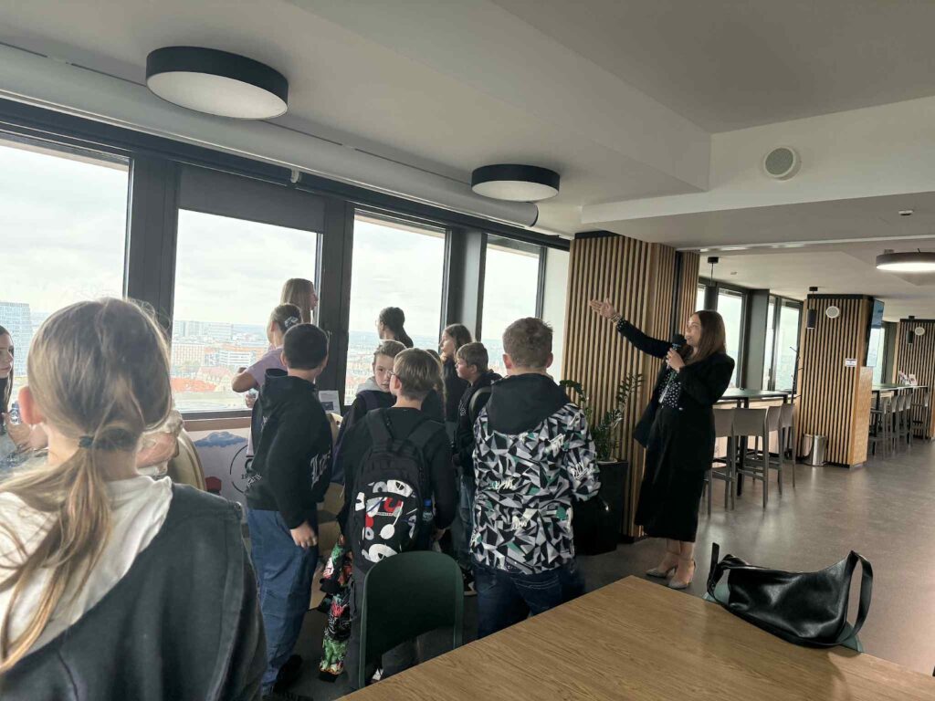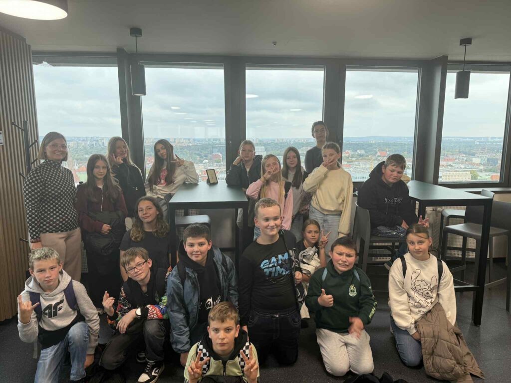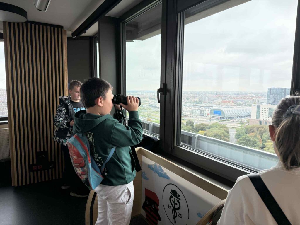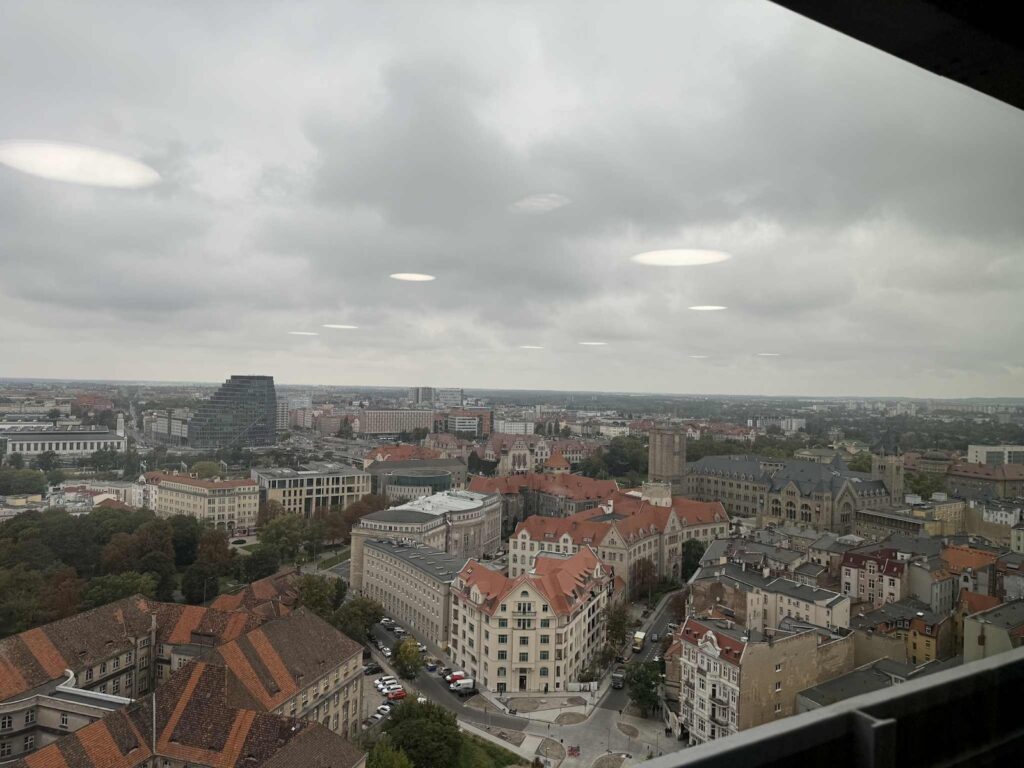 Po seansie udaliśmy się na taras widokowy Uniwersytetu Ekonomicznego w Poznaniu (UEP). Widok na panoramę miasta zrobił na wszystkich ogromne wrażenie. Przewodnik