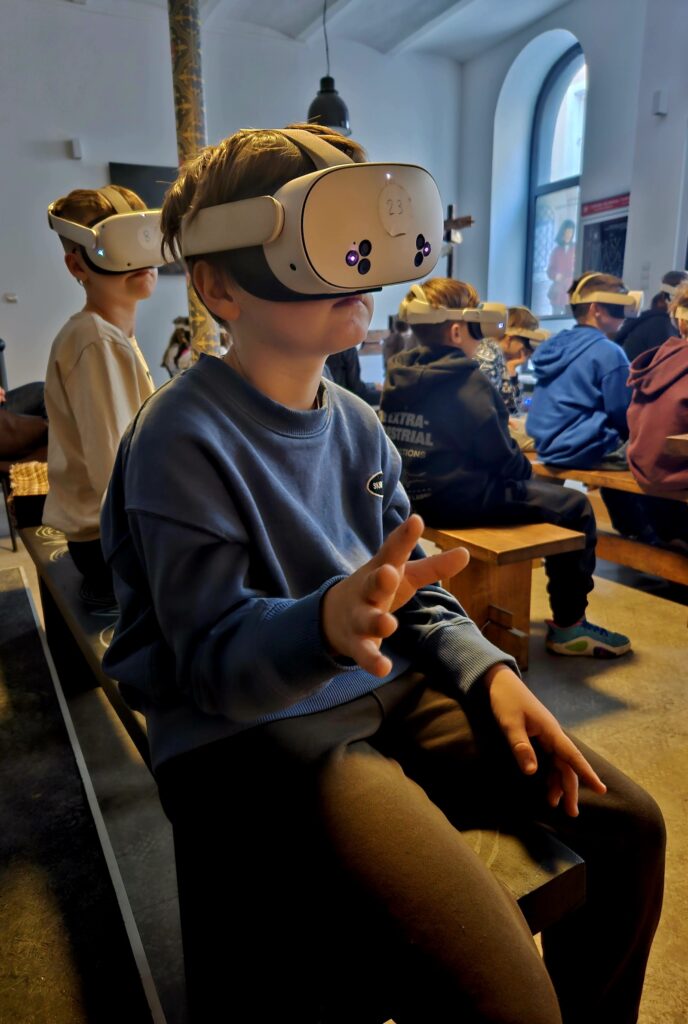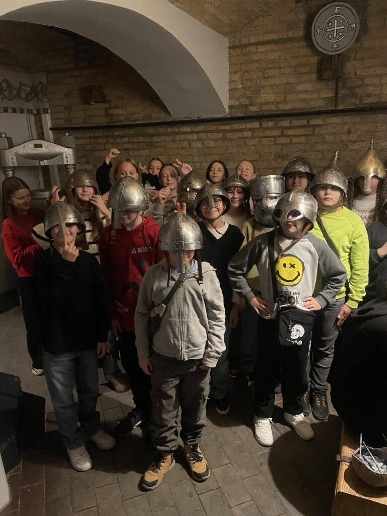 Po tej sycącej przekąsce udaliśmy się do Muzeum Dawnego Poznania, gdzie czekały nas kolejne atrakcje. Dzięki okularom w technologii Virtual Reality mogliśmy poznać historię początków Polski. Przenieśliśmy się w czasie i spotkaliśmy braci – Lecha, Czecha i Rusa. Następnie wraz z Dobrawą przybyliśmy na ucztę do Mieszka I, a z Bolesławem Chrobrym wyruszyliśmy na wyprawę zbrojną. Dzięki nowoczesnej technologii staliśmy się na chwilę uczestnikami wydarzeń z okresu Piastów, o których wcześniej słyszeliśmy na lekcjach historii w szkole.
