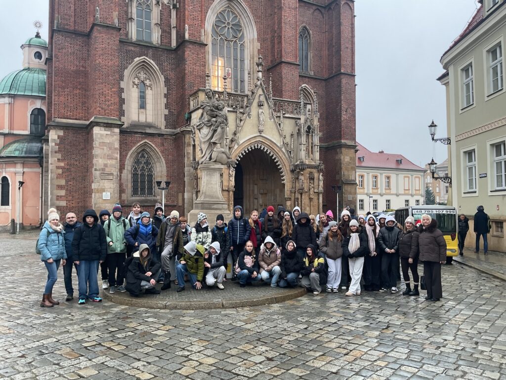 5 grudnia 2025 roku uczniowie klas 7a, 7b oraz 7c wyruszyli o świcie na niezwykłą wycieczkę do Wrocławia. Już od samego rana towarzyszył nam entuzjazm i ciekawość – nic dziwnego, bo plan dnia zapowiadał się wyjątkowo intensywnie i interesująco.