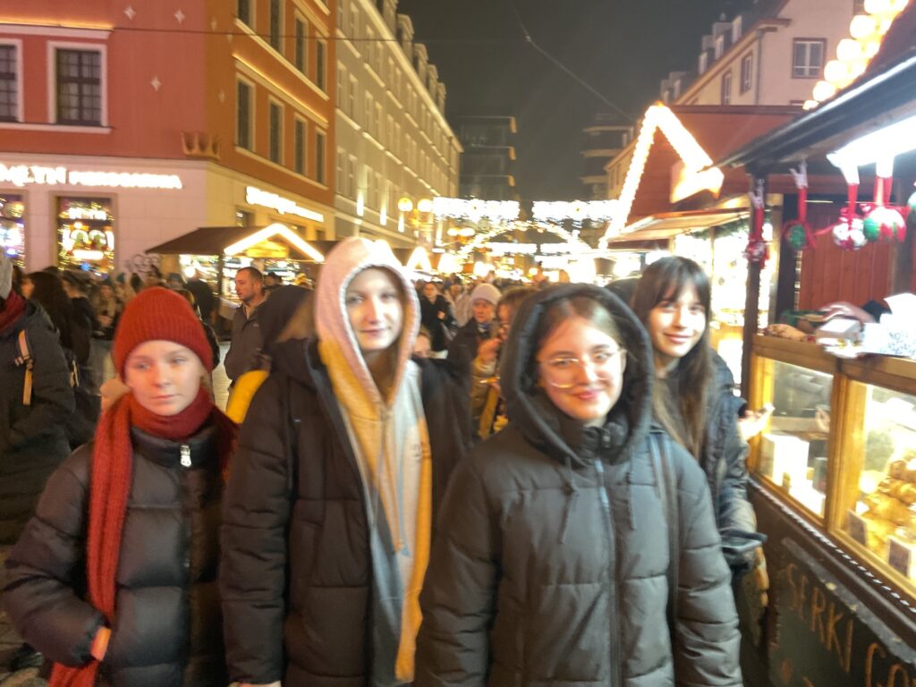 Po wizycie w Hydropolis wróciliśmy na Rynek, gdzie uczniowie mieli czas na zakup pamiątek i zanurzenie się w niezwykłej atmosferze Wrocławskiego Jarmarku Bożonarodzeniowego.