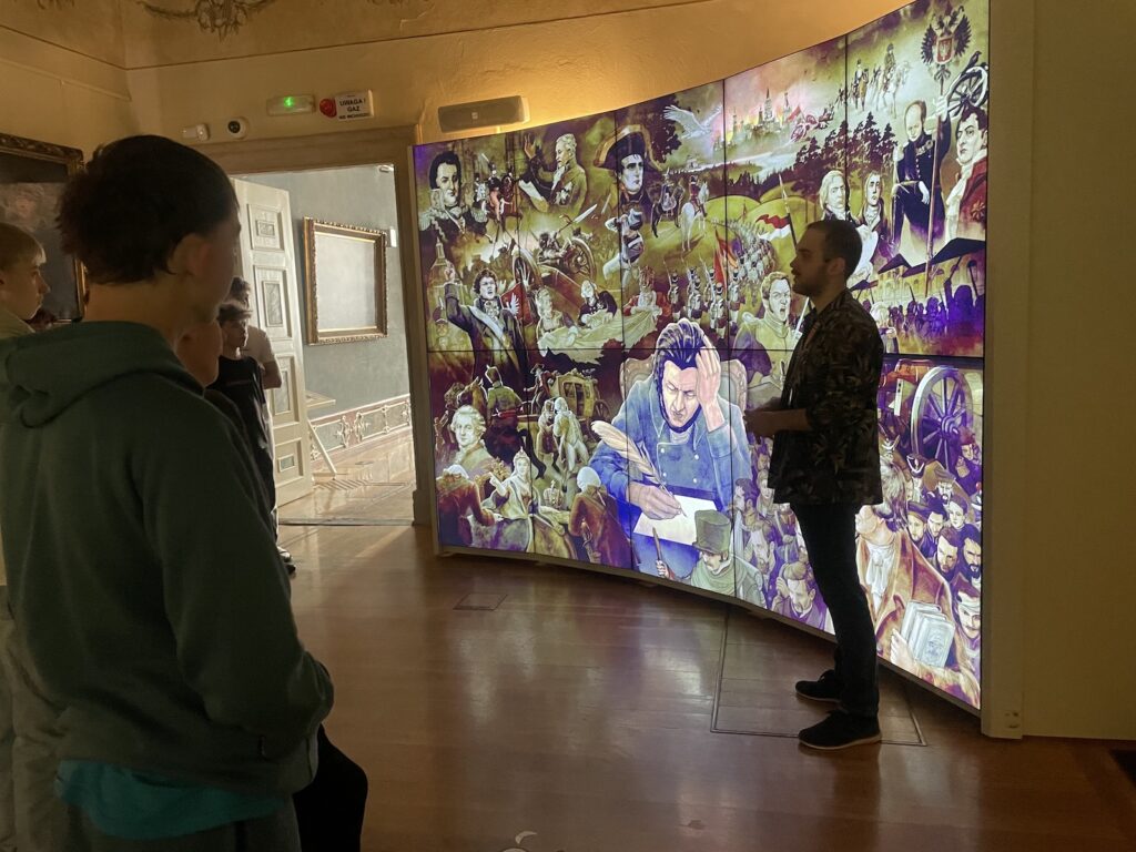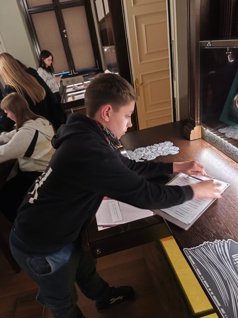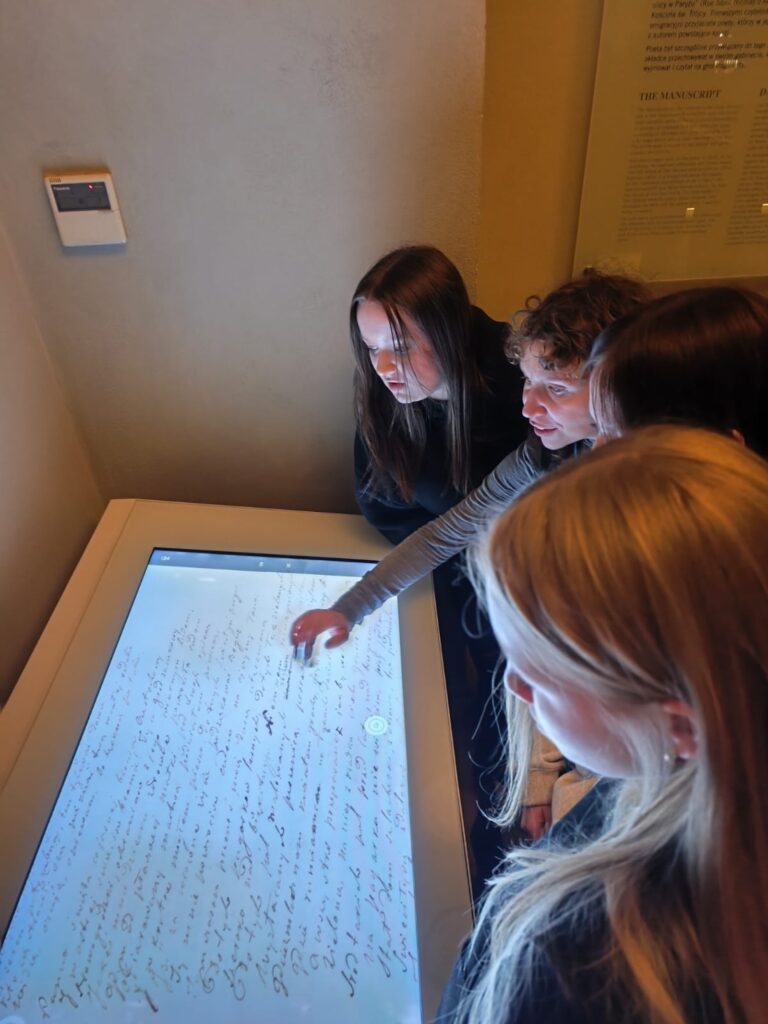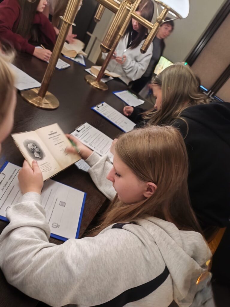 Najważniejszym punktem wyjazdu było jednak Muzeum Pana Tadeusza. To właśnie tam mogliśmy powtórzyć wiadomości o epopei narodowej, przypomnieć sobie życiorys Adama Mickiewicza oraz lepiej zrozumieć historyczne tło utworu. Ogromne wrażenie zrobił na nas rękopis „Pana Tadeusza”. Ku radości uczniów okazało się, że charakter pisma naszego wieszcza również bywał trudny do odczytania – a więc nie tylko ósmoklasiści zmagają się czasem z kaligrafią!