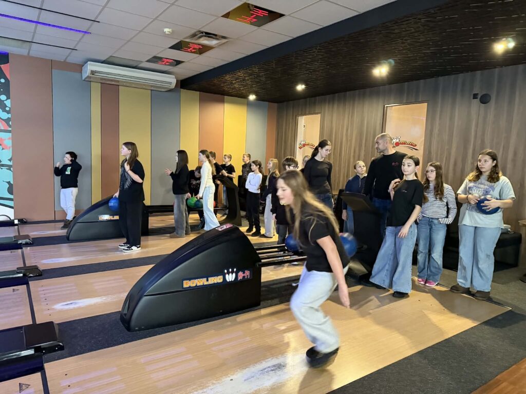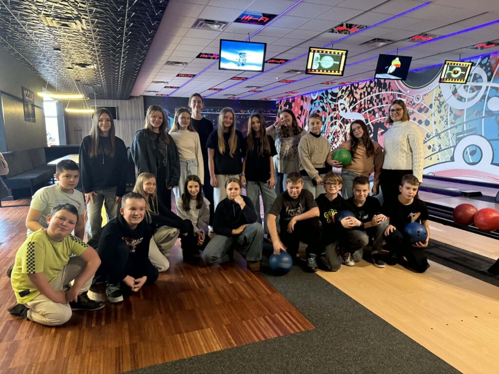 Na miejscu czekały na nich tor kręglarski, sportowe emocje oraz dużo radości. Wielu uczniów miało okazję po raz pierwszy spróbować swoich sił w grze w kręgle, co wzbudziło ogromne zainteresowanie i entuzjazm. Pierwsze rzuty, choć nie zawsze udane, wywoływały salwy śmiechu, a udane strącenia kręgli – gromkie brawa kolegów