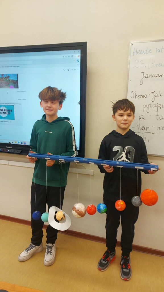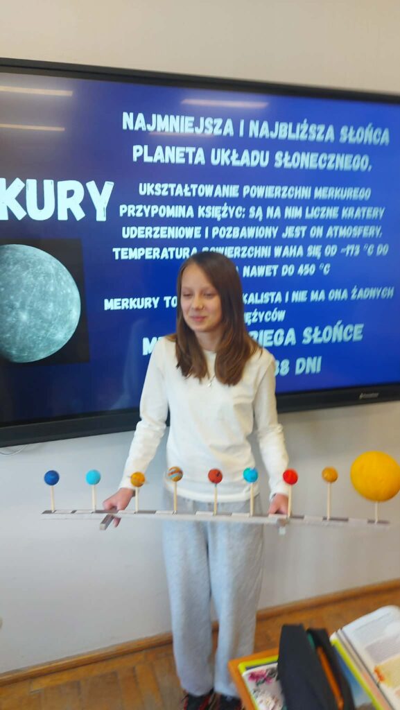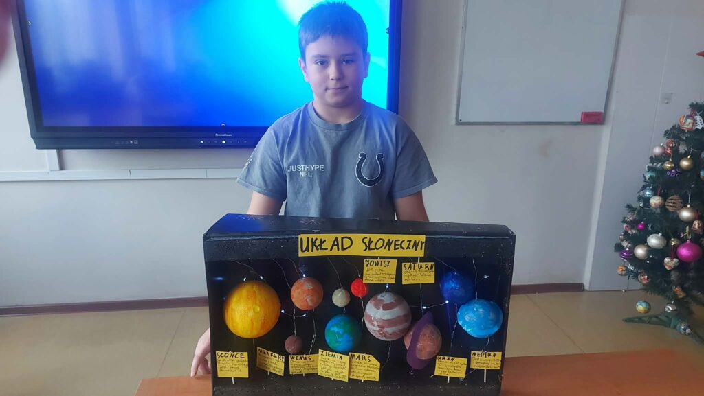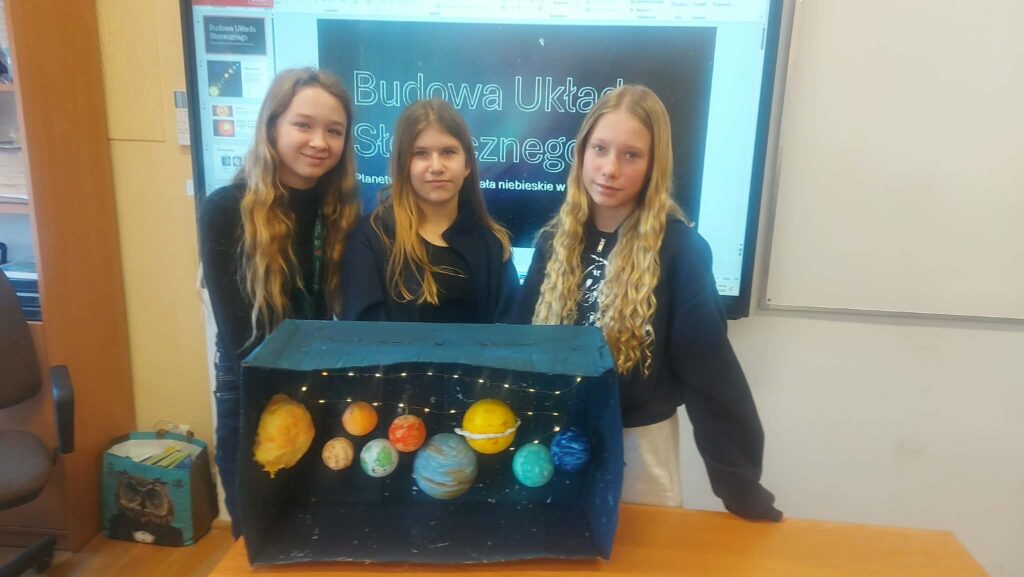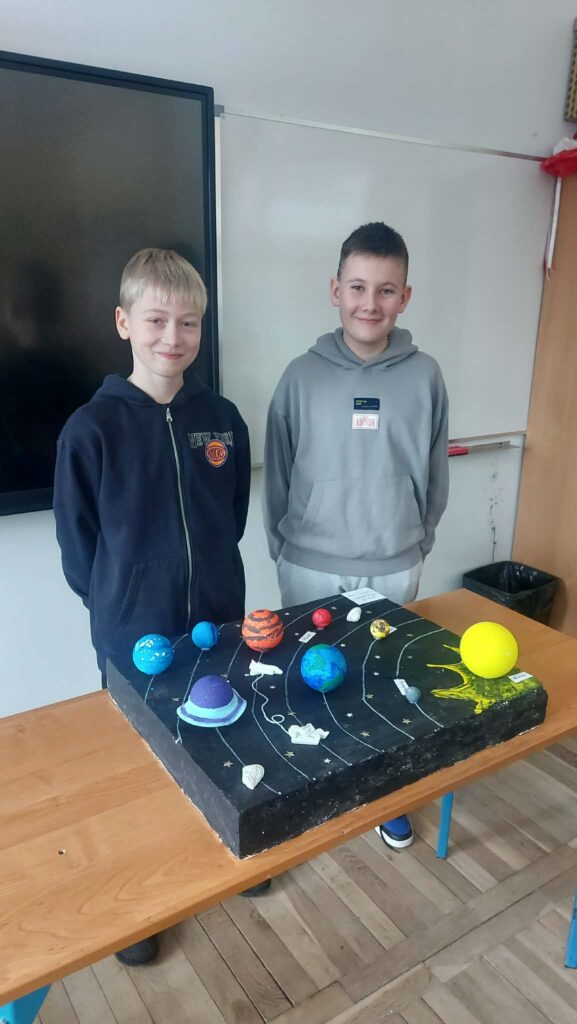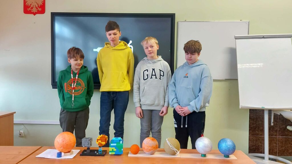 W styczniu odbyło się podsumowanie projektu edukacyjnego z geografii pt. „Ziemia we Wszechświecie”, realizowanego przez uczniów klas szóstych. Celem projektu było poszerzenie wiedzy o miejscu naszej planety w kosmosie oraz rozwijanie umiejętności pracy zespołowej, samodzielnego poszukiwania informacji i kreatywnego prezentowania zdobytej wiedzy.